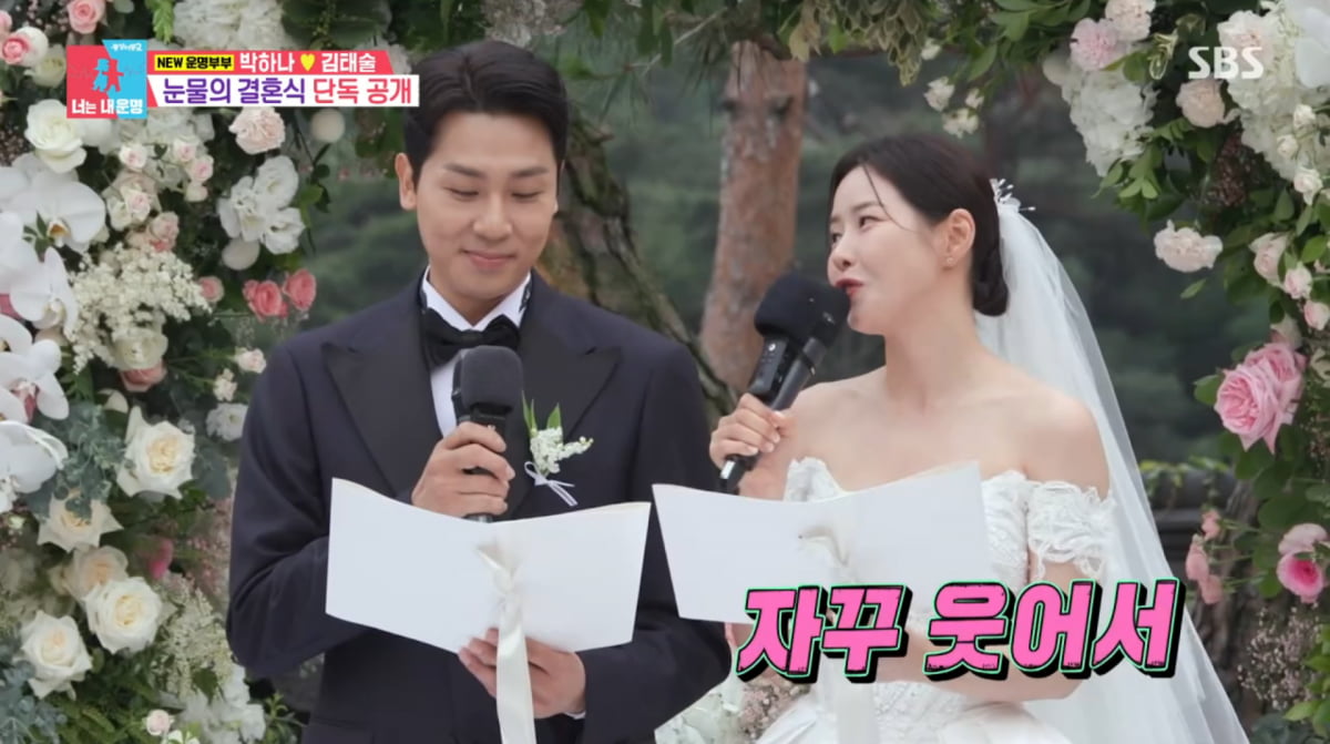 [텐아시아=김은정기자]사진=SBS'동상이몽2''동상이몽2'박하나와김태술이눈물의결혼식을올렸다.14일방송된SBS'동상이몽2-너는내운명'에서는박하나♥김태술부부의결혼식현장이공개됐다.이날박하나♥김태술은결혼D-7에배우양희경,박탐희를집으로초대했다."요리를잘하는아내가최고"라는양희경의말에박하나와함께요리를준비하던김태술은"제가그래서설거지굉장히많이한다"고자랑했다.아내지인의질문공세도쏟아졌다."하나의어떤점에반했냐"고묻자김태술은"하나가정이많다.혼자서울에있다보니외로움이있었던것같다.허전함을잘채워주는자상함에오래같이있고싶더라"고결혼이유를밝혔다.사진=SBS'동상이몽2'사진=SBS'동상이몽2'사진=SBS'동상이몽2'박하나는교제중에는싸우지않았지만,결혼을준비하며갈등을겪었다고밝혔다.김태술은"2년동안진짜안싸웠다.서로선을잘안넘고,누구한명은의견을접는편"이라고말했다.이에서장훈은"하나씨가순한것같다.김태술은호락호락접는스타일은아니"라며편을들었다.그러나김태술은"내가하나의견다들어주는편이다.내가계속져줬다고생각하며여기까지왔다"고변호해폭소를유발했다.양희경은"사람은참는게없다.언젠가는터진다"면서"결국이혼직전에터지는경우도있다.그건참는게아니라쌓아두는거다.내가그렇게이혼했다.그때그때푸는게중요하다"고경험을바탕으로조언했다.사진=SBS'동상이몽2'사진=SBS'동상이몽2'사진=SBS'동상이몽2'박하나-김태술의이야기를듣던배우한상진은시즌중어렵게하루를빼서웨딩촬영한박정은감독과의에피소드를털어놨다.신부촬영이먼저시작된다는말에친구들과잠들었고,촬영을전혀지켜보지않았다는그의말에박하나는"김태술이그랬으면난결혼안했다"고단호한태도를보였다.한편,박하나-김태술은야외결혼식을진행했다.결혼식에는안보현,이연두,전수경,최수린,최명길,김영옥,'동상이몽2''골때녀',이관희,하승진등농구선수들이참석해축하했다.결혼서약서에서김태술은"박하나의요리때문에뱃살이는다"고말했고,박하나는"김태술의유머때문에눈에주름이진다"며애정을표현했다.두사람은눈물로감동과행복을표현하며"사랑한다"고고백했다.김은정텐아시아기자[email protected]©텐아시아.무단전재및재배포금지.