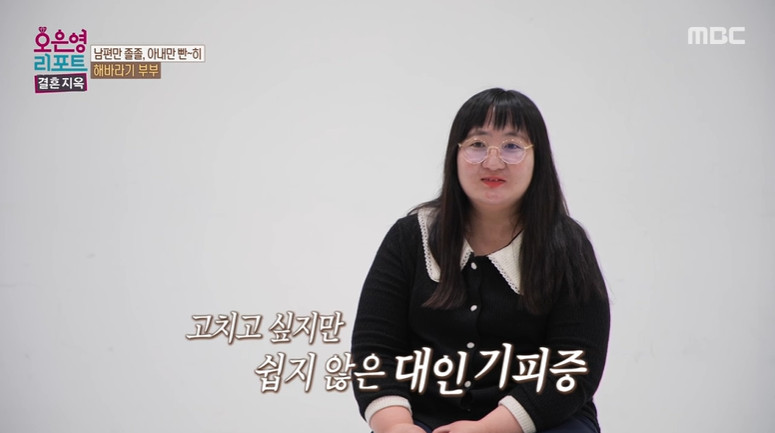 (엑스포츠뉴스김보민기자)'해바라기부부'아내가대인기피증증상을보였다.14일방송된MBC'오은영리포트-결혼지옥'('결혼지옥')에서는남편이없으면자기관리제로,남편만졸졸따라다니는아내와이런아내가걱정인남편,해바라기부부가오은영박사를찾았다.이날아내는남편이외출한사이라면을먹고누웠다가날씨를확인한후침대로이동해다시눕는모습을보였다.이후로도아내가하루종일집에만있자남편은"사람들하고어울리는걸많이힘들어하더라.그래서집에올때마다저한테얘기해서싸운적도있다"면서고민끝에'결혼지옥'에지원하게됐음을밝혔다.앞서관찰첫번째날카메라설치를위해제작진이집에방문했을때,아내는제작진이다가오자방에서서둘러나가고,남편이움직이자자석처럼따라다니는등의장면이포착됐다.제작진이첫째날에해당순간에대해묻자아내는"조금무서웠다"면서"사람들많은곳에있으면도망치고싶다는생각이들때가있다"고털어놨다.이후제작진이"사람들이무서워서그러냐"고하자아내는"다가가고싶은데자신이없으니까.애초부터못다가가거나아니면무시당하면또무시당하나보다하며그렇게된것같다"고말했다.이어"사람이무서워서사귀지않거나그런건아니냐"고하자아내는"묻지마범죄그런것도뉴스에서보면무서워서그런게있기도했다"고말했다.새벽예배후아침식사중,남편이"교회에서수요예배때조금어렵더라도사람들에게인사라도드리는게어떠냐"고제안하자아내는"인사잘드려야지"라고답했다.남편이"어려운게있으면얘기해봐라"라고하자아내는"소심한게있어서친해진분들이랑은인사잘하고그러는데,안친하거나어색하거나조심스러운분들한테는버벅거려서"라며"안친해지는게아니라못친해지는거다.소심한거아니면다가가서'안녕하세요'그러고싶은데입이안떨어진다"고덧붙였다.스튜디오에서오은영은"원래도그러셨냐"며결혼전에도비슷한상황을겪었는지궁금해했고,아내는결혼이후대인기피증이더심해졌음을전했다.사진=MBC방송화면김보민기자[email protected]©엑스포츠뉴스.무단전재및재배포금지.
