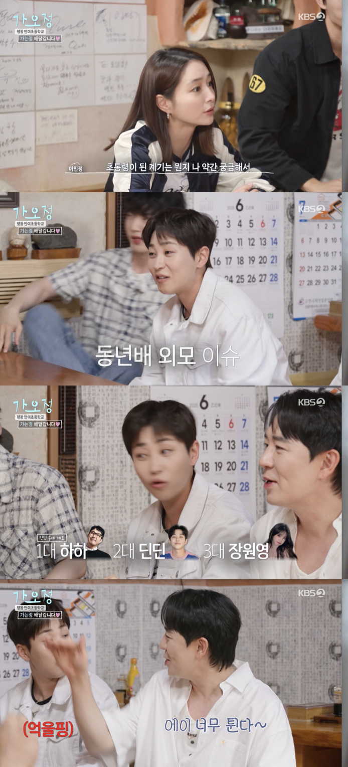 사진=KBS2예능‘가는정오는정이민정’가수딘딘이하하,장원영과같은동네출신이라고밝혔다.11일방송된KBS2예능‘가는정오는정이민정’에서는정남매(이민정,붐,안재현,김정현,김재원)가특별한의뢰를받아게스트딘딘과강원도평창의한초등학교를찾았다.이날딘딘은초통령수식어에대해“나를초등학생인줄안다.또래같나보다”라며“어릴적동네선배가하하형이다.초통령2대가나,3대가장원영이더라”이라고말했다.붐은“동네자체가귀엽다.동안이라고”라면서“장원영이라니너무튄다”고웃었다.그러자딘딘은“진짜우리동네출신”이라고강조했다.이어딘딘은‘가오정’을궁금해하며“어떤스타일리스트는‘1박2일’보다힘들다더라.때려치고싶다고한다”고걱정했다.붐은“우리는따뜻한프로그램이고보면서몇번울뻔했다.그정도로감동이있다”고소개했다.이에딘딘은“오늘은헐뜯음이없는거구나”라며한시름놓았다.이주인기자[email protected]©일간스포츠.무단전재및재배포금지.