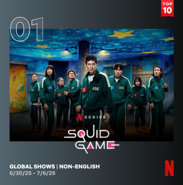 '오징어게임'시즌3,넷플릭스글로벌TOP10정상시즌1,2에이어역대시리즈(비영어)3위등극(MHN장민수기자)넷플릭스시리즈'오징어게임'시즌3가2주차에도글로벌정상을지켰다.9일넷플릭스글로벌순위집계사이트넷플릭스TOP10투둠에따르면'오징어게임'시즌3는지난달30일부터이달6일까지2억8380만시간,4630만시청수(시청시간을작품의총러닝타임으로나눈값)를기록하며TV쇼(비영어)부문1위에올랐다.93개모든국가에서2주연속1위를수성했다.넷플릭스시리즈작품으로서는첫기록이다.또한공개10일만에1억630만시청수를기록하며넷플릭스역대최고인기시리즈(비영어)3위에등극했다.'오징어게임'전시즌이넷플릭스역대최고인기시리즈(비영어)에서나란히1,2,3위에오르게됐다.지난달27일공개된'오징어게임'시즌3는자신만의목적을품고다시참가한게임에서친구를잃고만기훈과,정체를숨긴채게임에숨어들었던프론트맨,그리고살아남은참가자들의마지막운명을그린이야기다.황동혁감독이연출했으며,이정재,이병헌,임시완,강하늘,위하준,박규영,이진욱,박성훈,양동근,강애심,조유리,채국희,이다윗,노재원,전석호등이출연한다.지난주각각3위와6위를기록했던시즌2와시즌1도나란히순위를끌어올렸다.시즌2는같은기간3510만시간,490만시청수로2위,시즌1은3130만시간,380만시청수로3위다.또다른한국작품으로는박보영,박진영주연의tvN드라마'미지의서울'이2860만시간,180만시청수로6위에올랐다.소지섭주연의넷플릭스시리즈'광장'은500만시간,100만시청수로8위를기록했다.한편영화(영어)부문에서1위를차지했던'케이팝데몬헌터스'는2위로내려갔다.3780만시간,2270만시청수를기록했다.1위는'올드가드2'다.'케이팝데몬헌터스'는케이팝슈퍼스타인루미,미라,조이가화려한무대뒤세상을지키는숨은영웅으로활약하는이야기를담은액션판타지애니메이션이다.매기강감독이연출했으며,아든조,안효섭,메이홍,유지영,김윤진,조엘킴부스터,라이자코시,대니얼대김,켄정,이병헌등이목소리연기에참여했다.사진=넷플릭스Copyright©MHN.무단전재및재배포금지.