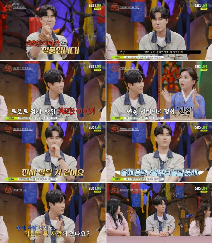 예능‘귀묘한이야기’신성(출처:SBSLIFE)트로트가수신성이‘귀묘한이야기’의게스트로출연,‘대박점사’를접하고함박웃음을터트렸다.신성은8일방송된SBSLIFE‘신빨토크쇼귀묘한이야기’(이하‘귀묘한이야기’)에출연,여섯무당들이직접겪은‘한밤중무서운에피소드’를들으며이야기에과몰입했다.먼저신성은자신의신곡‘얼큰한당신’을즉석에서‘귀묘한이야기’스타일로개사한무대를선보여분위기를끌어올렸으며,무속인들에게“앞으로의운을비롯해,초대형히트곡이탄생할수있을지궁금하다”라고점사를요청했다.이에‘트로트계점사맛집’26년차무속인천지신당은“반듯하고정직한이미지라말년운이무척좋고,진짜잘될것같다”라고‘꽃길’을예고해신성을흐뭇하게만들었다.더불어‘재수굿의대가’25년차무속인천신애기는“그동안은고속도로가아닌국도를달린느낌”이라며,“음력7월부터운이괜찮아지는데,조금더욕심을내야할것같다”라고조언했고,이에신성은“더욱달려보겠다”라며고개를끄덕였다.이날신성은개그우먼겸트로트가수안소미와동반출연해,‘밤야’(夜)를주제로무속인들이직접겪은무서운이야기들을접하며연신‘소름’을연발했다.“어린시절부터가위에잘눌려서,당시꿈에서처녀귀신을본트라우마가있다”라고밝힌뒤각종에피소드에과몰입한것.이날녹화말미에는무속인들과출연진모두가이상한소리를듣게되어더한공포를자아냈는데,“대박날징조”라는무속인의이야기에안도한신성은“평소어른들이밤늦게돌아다니지말라고하시는이유가있다.어른들의이야기를잘들어야겠다”라는소감을전하며방송을마무리했다.한편MBN‘불타는트롯맨’준우승자신성은MBN‘불타는장미단’,‘한일톱텐쇼’,MBCON‘트롯챔피언’,SBSLife,SBSM‘더트롯쇼’,KBS2‘불후의명곡’,MBC‘복면가왕’,SBS‘인기가요’등을통해‘대세트로트가수’로서의다양한무대를선보이는한편,SBS‘꼬리에꼬리를무는이야기(꼬꼬무)’,MBC에브리원‘거침없이스매싱!핑퐁스타즈’,KBS2‘박원숙의같이삽시다’,채널A‘4인용식탁’,JTBC‘아는형님’,‘트립인코리아시즌5’,‘가화만사성’등다채로운방송활동을이어나가며예능인과MC로도두각을드러내고있다.이와함께신곡‘얼큰한당신’이폭발적인반응을모으며활발한활동중이다.한효주기자bnt뉴스연예팀기사제보[email protected]©bnt뉴스.무단전재,재배포및AI데이터활용금지