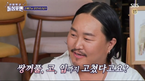 [스타뉴스|김정주기자]/사진=SBS'신발벗고돌싱포맨'방송화면'신발벗고돌싱포맨'에서가수조째즈가성형사실을깜짝고백했다.8일방송된SBS'신발벗고돌싱포맨'은'불멸의염장꾼들'이라는주제로꾸며졌다.배우정석용,강예원과개그우먼정주리,조째즈가게스트로출연했다.이날조째즈는"다고친얼굴이냐"라는이상민의질문에쌍꺼풀과코,이를성형했다고밝혀모두를충격에빠뜨렸다.그는"고등학교때축구를하다가코뼈에금이가서성형외과에갔다"라며"어머니랑같이갔는데미래지향적인분이라선견지명이있으셨는지'이얼굴로는경쟁력이없을것같다'라면서성형을권하셨다"라고털어놨다./사진=SBS'신발벗고돌싱포맨'방송화면이어"보통어머니가권유하는경우는잘없는데상당히열린분이셨다.용돈많이줄테니까한번해보라고하셨다.제가남중,남고라창피했다.수술했는데왜이러냐는얘기가나올것같았다.일단수술했는데마음에들더라"라고털어놨다.이에임원희는"자연스럽다"라고감탄했고,조째즈는"살이찌면서안으로몰려서더자연스러워졌다"라고설명했다.김준호는조째즈를빤히쳐다보더니"이마에도넣었느냐"라고물었고,조째즈는"자연스럽게넓어진거다"라고대꾸해웃음을유발했다.김정주기자[email protected]©스타뉴스&starnewskorea.com,무단전재및재배포금지