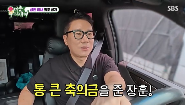SBS‘미운우리새끼’캡처SBS‘미운우리새끼’캡처[뉴스엔유경상기자]이상민이아내에게서장훈이준축의금을고백했다.7월6일방송된SBS‘미운우리새끼’에서는이상민이10살연하아내를최초공개했다.이상민은재혼인자신과달리초혼인아내가결혼식을하지않은것을계속걸려하면서“장모님은딸의입장을들어줬지만결혼식안해서서운해하지않을까”라고걱정했다.아내는“내가주인공인데다른사람들이왜서운하냐.웨딩촬영정도는하고싶다”고말했다.이상민은“그래,내가최고로해줄게.장모님하고오빠하고조카들하고가까운사람몇명해서스몰웨딩이라도올리고싶은마음이있긴있다”며“장훈이가축의금3백만원이나줬다”고갑작스럽게서장훈에게받은축의금도고백했다.서장훈이“갑자기그이야기를왜하냐”며놀랐고신동엽은“곧준호랑지민이도결혼을하는데”라며서장훈의부담감을꼬집었다.서장훈은“상민이형은좀상황이,빚다갚고”라며이상민의상황이안좋아더신경썼다고했다.이상민은아내에게“장훈이에게받은거랑다줄테니까사고싶은것있으면사라”며“진짜내주변에서는아직도못믿는다.아내가있다는걸.희철이도못믿는다.너무급하게결혼하고혼인신고하고.탁재훈은아직까지AI랑산다고한다”고주위반응을전했다.(사진=SBS‘미운우리새끼’캡처)뉴스엔유경상yooks@기사제보및보도자료[email protected]ⓒ뉴스엔.무단전재&재배포금지Copyright©뉴스엔.무단전재및재배포금지.