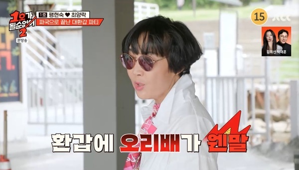 JTBC‘1호가될순없어2’캡처JTBC‘1호가될순없어2’캡처[뉴스엔유경상기자]최양락이아내팽현숙을오리배에태우자개그맨후배들이집단으로반발했다.7월2일방송된JTBC‘1호가될순없어2’에서는최양락이아내팽현숙의60세생일이벤트를준비했다.최양락은아내팽현숙의꿈이었던오픈카를준비해모두의환호를받았지만오픈카는2시간대여로끝났다.김학래가“나한테빌리지그랬냐”고말하자최양락은“형은오픈카가아니잖아.오픈카야?내가저형을좋아할수가없다.김새서뭐를보냐”며심기불편한표정을보였다.오픈카에서내린최양락이배쪽으로가자모두가요트를기대했지만김학래가“발움직여야하는오리배를탈거”라고예측했다.개그맨후배들이“설마환갑인데.오리배면실망할거다”고하자김학래는“오리배아니고요트탔으면내가배를선물한다”고장담했다.이어최양락이아내팽현숙을데려간곳은오리배가맞았다.후배들이집단으로반발했고최양락은“어쩜그렇게나에대해잘아냐”며김학래의예측에놀랐다.최양락은“우리연인때,결혼하기전에,신혼기억을되살렸다”며오리배를선택한이유를말했다.팽현숙은“실망했다.유람선도있고크루즈도있고요트도있는데왜굳이.돈없을때타던걸왜.오리고기식당을했는데조류독감으로망했다.안좋은트라우마”라고토로했다.팽현숙은“나안탈래.가자.환갑에누가오리를타냐.나치마입었다”고분노하면서도결국오리배를탔다.심지어최양락은3만원자동보다5천원저렴한수동배를골랐고후배개그맨최설아가“5천원아끼자고수동을타냐”며버럭했다.(사진=JTBC‘1호가될순없어2’캡처)뉴스엔유경상yooks@기사제보및보도자료[email protected]ⓒ뉴스엔.무단전재&재배포금지Copyright©뉴스엔.무단전재및재배포금지.