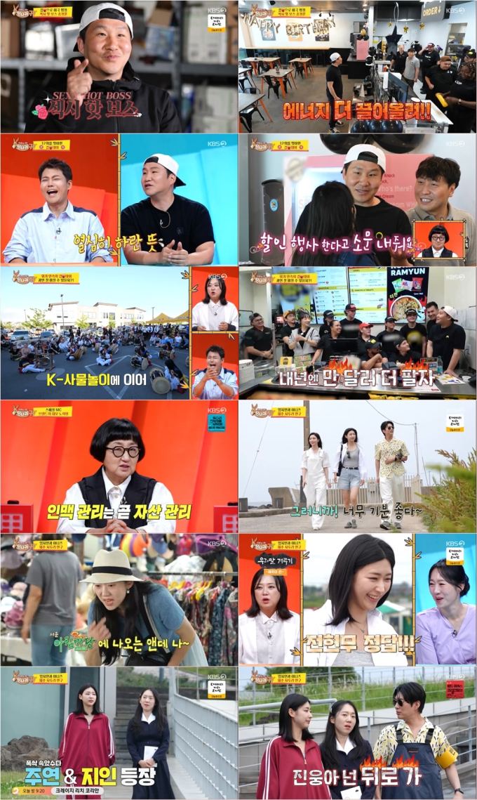 ‘사당귀’송정훈컵밥10주년…최고6.2%(사진:KBS)KBS2‘사장님귀는당나귀귀’에컵밥으로전세계외식업계를점령한‘해외파뉴보스’송정훈이등장해한국음식에대한자부심과열정은물론유쾌한에너지까지선사했다.지난29일(일)방송된KBS2예능‘사장님귀는당나귀귀’(연출안상은,이하‘사당귀’)312회는최고시청률6.2%를기록하며,161주연속동시간대예능1위의기세를이어갔다.(닐슨코리아기준)이날방송에서는미국유타에서푸트트럭컵밥으로시작해현재미국,인도네시아등에서260개의컵밥매장을운영하며연매출약600억을달성중인‘글로벌뉴보스’송정훈이출연했다.스스로를‘섹시핫보스’로소개한송정훈은컵밥10주년을맞아직원들과함께특별생일데이를바쁘게준비했다.남다른텐션으로매장에등장한송정훈은직원들에게“오늘은특별한날이니화장실도가지말고,쉬지말고,일만열심히해달라”고말해직원들은물론스튜디오MC들의원성을자아냈다.오래그를지켜본직원들은보스에대해“쓸데없는일을벌이는걸좋아한다”고말해송정훈을당황케했다.매장오픈전직원들과서슴없이장난을치고다소과격한농담을주고받는모습에박명수는“미국노동청이어디냐”며폭풍잔소리해웃음을안겼다.송정훈은매장을찾은손님들에게즉석에서한국과자를선물하거나만두를서비스로주는등한국특유의‘정’과‘덤’,‘흥’문화를전파하며‘인기보스’로등극했다.특히주체할수없는송정훈의열정을직접눈으로확인한전현무는“나는내친구를시켜서컵밥을테이크아웃해서먹겠다”고고개를저어모두를웃음짓게했다.송정훈보스의기지는위기에서더욱빛을발했다.컵밥데이행사로인해옆가게의주차장진입로를막아항의를받게된것.송정훈은곧바로현장을찾아손해배상을약속한것은물론이고,불편을끼친것에대한미안함을전했다.그리고라면등한국음식을선물하는등위기를슬기롭게대처하며‘열정보스’의면모를뽐냈다.그결과행사는성공적으로진행됐다.이날행사는케이팝퍼포먼스를시작으로보이스챌린지게임,태권도시범,사물놀이등한국문화를상징하는공연들로빼곡히채워지며감동을더했다.송정훈은행사를위해특별히준비한선물들을아낌없이나눠주며컵밥성공의기쁨을지역주민들과나눴다.이날스튜디오에는노희영대표가스페셜MC로출연해눈길을끌었다.노희영은송정훈의성공기를지켜보며“장사가잘되는곳은다이유가있다.직원들과도패밀리처럼일하는것같아보기가좋다”고말했다.음식가게오픈을준비중인‘순실보스’이순실은종이에송정훈보스에게서배운사업전략을작성하며존경심을드러냈다.이순실은“북한속담에‘먹은소가똥을싼다’는말이있는데손님들에게아낌없이서비스를주는것부터정말많이배웠다.나도미국에데려가줘요”라며특급애교를선보여폭소를유발했다.한편엄지인은‘후배아나즈’홍주연,김진웅,정은혜와함께KBS아나운서실한국어연구부에서준비중인‘한국어포스터’촬영을위해제주도로향했다.포스터메인모델을두고아나운서들의치열한눈치작전이이어졌다.포스터촬영과더불어다양한제주어를채록하기위해시장에간엄지인은즉석에서인지도테스트를자청해후배아나즈를당황케했다.엄지인이‘아침마당’을내세우며제주도민들에게자신을어필하자홍주연,김진웅,정은혜는“왜여기서정치인처럼하시는거냐”고기겁하며줄행랑을쳐웃음을선사했다.엄지인의‘주인공야욕’은포스터촬영이시작되면서더욱강해졌다.엄지인은인기드라마‘폭싹속았수다’의주인공아이유로,김진웅은극중캐릭터인‘학씨아저씨’로변신했다.아이유로변시한엄지인의모습에박명수는“애순이가너무어머니같지않냐”고놀렸고전현무는“염혜란씨역할을한거냐”고쐐기를박아엄지인을당황케했다.그리고정작마지막에채택된포스터의주인공은정은혜로밝혀지자엄지인은허탈한웃음을감추지못했다.한편이날방송이후각종커뮤니티와SNS에서는“송정훈대표친화력긍정밝은마인드.잘되는데는이유가있다”,“에너지가넘친다가보고싶다”,“정말리스펙합니다”,“엄지인보스후배들과의케미최고”,“홍주연씨고향이제주도였어요?사투리하는거매력있네요”,“정은혜아나운서예쁜거인정합니다”,“중년의대세픽김진웅”,“사당귀아나운서편이제일재밌어요!”등뜨거운반응이이어졌다.한편‘사장님귀는당나귀귀’는매주일요일오후4시40분KBS2TV에서방송된다.박지혜기자[email protected]뉴스연예팀기사제보[email protected]©bnt뉴스.무단전재,재배포및AI데이터활용금지