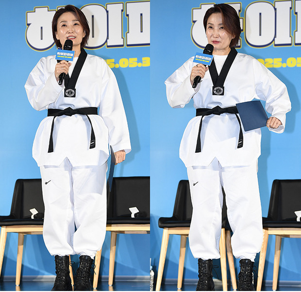 방송인박경림이12일오전서울광진구롯데시네마건대입구에서열린영화‘하이파이브’제작보고회에진행자로참석했다.박경림은평범함을거부하는독창적인스타일링으로유쾌한패션감각을드러냈다.깨끗한화이트태권도복에블랙띠로포인트를더해스포티한무드를연출했다.박경림은평범함을거부하는독창적인스타일링으로유쾌한패션감각을드러냈다.사진=천정환기자박경림이영화‘하이파이브’제작보고회에진행자로참석했다.사진=천정환ㄱ지ㅏ여기에통굽의레이스업블랙워커부츠를매치해스포티와스트리트무드를절묘하게조화시켰다.사진=천정환기자여기에통굽의레이스업블랙워커부츠를매치해스포티와스트리트무드를절묘하게조화시켰다.군더더기없이깔끔한단발헤어와자연스러운메이크업으로자신감넘치는분위기를배가시켰다.박경림은특유의밝은표정과재치있는멘트로현장분위기를유쾌하게이끌었다.한편영화‘하이파이브’는장기이식으로각기다른초능력을얻게된다섯명이그들의능력을탐하는세력과맞서며벌어지는이야기를그린작품이다.[김승혜MK스포츠기자][ⓒMK스포츠,무단전재및재배포금지]Copyright©MK스포츠.무단전재및재배포금지.