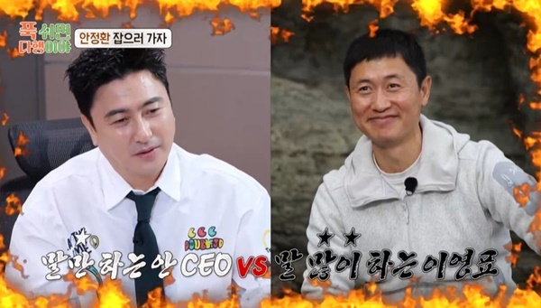 MBC‘푹쉬면다행이야’캡처MBC‘푹쉬면다행이야’캡처MBC‘푹쉬면다행이야’캡처[뉴스엔유경상기자]이영표가안정환과여전한앙숙케미를보였다.5월12일방송된MBC‘푹쉬면다행이야’(이하‘푹다행’)에서는이영표,조혜련,조우종,설기현,정호영셰프가무인도로향했다.백토커로김민경,이한이스튜디오에함께했다.이영표는“‘푹다행’전신이있다.‘안다행’이라고”라며‘안싸우면다행이야’5년전출연을언급했다.붐은“안정환과함께가서큰화제가됐다.서로너무안맞아서화제가됐다”고말해웃음을자아냈다.이영표는“정환이형이지금‘푹다행’을하면서섬전문가가됐더라”며“정환이형보다더잘할수있겠다”고자신감을보였고안정환이“아,쟤는”이라며짜증을분출해웃음을더했다.이영표가“무인도경험이있기때문에도전해봐야겠다는생각을했다”고말하자안정환은“이영표가축구할때는꾀돌이고영리하다.섬에가서완전실망했다.알려줘도못하더라”고거침없이디스했다.붐이“그런데어떻게리더를하려고”라며걱정했다.이어이영표는“무인도에서살아남을수있는최고의정예요원들”이라며조혜련,조우종,설기현과함께섬으로향한이유를말했다.이영표는조우종에대해“같이중계를했다.호흡이잘맞는다”고했다.붐이조우종,이영표의중계가“김성주,안정환의라이벌”이라고말하자안정환은“우리는1등”이라고항의했다.이영표는“안정환형의장단점이뭐냐”며안정환을의식했고정호영셰프는“섬을잘알기때문에어디서뭐가나오고.그런수확을잘한다.기본적으로요리도많이도와준다”고말했다.설기현은“안정환형과이영표형이안친하다”고폭로했고이영표는“정환이형과나하고는친한스타일이아니다.정환이형하고설기현은서로싫어하는스타일”이라고응수했다.설기현은“아니다.정환이형을영표형이정말싫어한다”고거듭말했다.안정환은이영표와설기현중에서누가더싫은지질문을받자“영표는말이진짜많은놈이고기현이는말이너무없다”고답했다.또이영표가“저는말로하는리더십이아니라행동하는리더십으로차별화하겠다.안정환잡으러가자”고열의를드러내자안정환은“해산물을잡으라고.나잡지말고”라고탄식했다.이어이영표는사사건건안정환을의식했지만베테랑안정환과달리실수를거듭했다.요리를하면서도알아서척척기본손질을해내는안정환과달리이영표는말을해줘야움직였고정호영셰프가“좀답답했다.안정환은기본손질이다된다.제가말할게없다.그런데이영표감독은하나부터열까지다알려줘야한다”고토로했다.붐은“정호영셰프짜증난표정처음본다”며웃었다.하지만정작하루일정이모두끝나고나자정호영셰프는“리더는이영표”라며안정환보다이영표가낫다고말했고,이에안정환이정호영셰프와함께무인도에가게될날을기다리는모습으로후폭풍을예고했다.(사진=MBC‘푹쉬면다행이야’캡처)뉴스엔유경상yooks@기사제보및보도자료[email protected]ⓒ뉴스엔.무단전재&재배포금지Copyright©뉴스엔.무단전재및재배포금지.