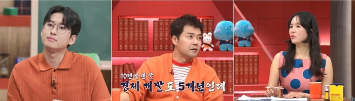 속풀이쇼동치미.사진|MBN[스포츠서울|박경호기자]방송인김용만의아들이DJ로활동중인근황이알려졌다.지난12일방송된MBN예능프로그램‘속풀이쇼동치미’는MC특집으로꾸며졌다.이날방송에는김용만의절친조혜련이게스트로출연했다.이날조혜련은김용만아들을언급하며“오빠아들도음악을사랑했다.미국명문대에서유학하다가갑자기이태원에서DJ를하고싶다고했다”라고말했다.이에김용만은아들이학교를자퇴했다고말하며“아들의판단을존중한다.본인인생이니까”라며담담하게말했다.한편,김용만은1991년KBS‘대한개그제’에서대상을수상하며데뷔했다.이후1998년결혼,1999년아들을품에안았다.김용만의아들은미국버클리음대에서유학중이었으나,현재자퇴후국내에서DJ로활동중이다[email protected]©스포츠서울.무단전재및재배포금지.