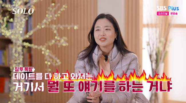 [OSEN=박하영기자]‘나는SOLO’26기정숙이상철과영자의데이트에위기감은물론,데이트끝나고도이야기나누는두사람에질투했다.18일방송된ENA와SBSPlus‘나는SOLO’에서는26기정숙이상철과영자사이를질투하는모습이그려졌다.앞서슈퍼데이트권을획득한영자는그토록바라던상철과일대일데이트를했다.영자는정숙이없는틈을타적극적으로어필했고,상철역시흔들리는모습을보였다.데이트를마친후영자는숙소에돌아와서도상철의방을찾아가대화를이어갔다.이에MC들은전날정숙이상철이누구와도대회를하지못하도록철통방어했던방식그대로따라했다고추측했다.같은시각,여자숙소에놀러온영호는“상철,영자도데이트하고왔다”라며“우리숙소에서이야기하고있다”라고알렸다.이를들은정숙은“거기서얘기하고있냐”라고질투하기시작했다.급기야정숙은다른출연진들에게“심기불편해졌다.둘이대화하고있어서지금기분안좋다.데이트하고와서뭔대화를또하냐.나랑해야지.기분나빠”라고솔직한마음을털어놓기도했다.데프콘은“질투발동시작됐다.‘어?어제내가했던방식인데,이거진짜전쟁이구나배틀이구나’느꼈을것”이라며흥미진진하게바라봤다.이어진정숙은인터뷰에서“‘뭘또얘기하는거냐’하면서좀짜증이났다”라고다시한번불쾌감을드러냈다./mint1023/@osen.co.kr[사진]‘나는SOLO’방송화면캡처Copyright©OSEN.무단전재및재배포금지.