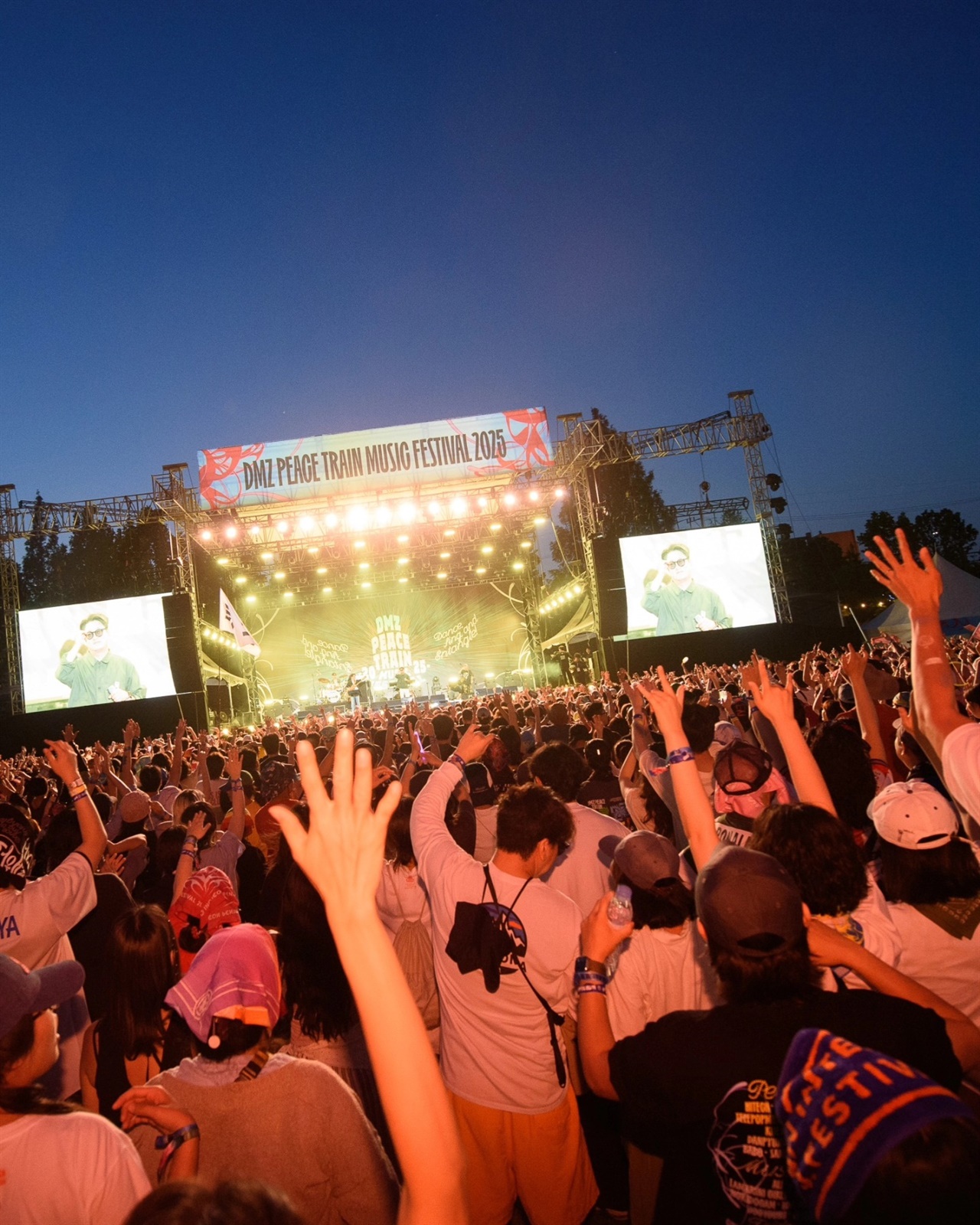 2025DMZ피스트레인뮤직페스티벌후기이현파크리에이터▲2025DMZ피스트레인뮤직페스티벌에서김현철이노래하는모습ⓒDMZ피스트레인뮤직페스티벌페스티벌을즐기기위해철원에머무는동안,이스라엘과이란간의분쟁소식을접했다.대도시에미사일이떨어지는모습을영상으로지켜보았다.미국에서는사상최대규모의반트럼프시위가벌어졌다.다시한번질문을던지게된다.2025년에평화는성립할수있는단어인가?혹시나공허한이상은아닌가?공교롭게도,대한민국에서유일하게'평화'를모토로삼은페스티벌에와있는참이었다.DMZ피스트레인뮤직페스티벌(6월13일~6월15일)은'음악을통해평화를노래한다'는콘셉트와함께2018년출범했다.그러나당시공연장에울려퍼진'전쟁은끝났다'는한아티스트의외침이무색하게평화는짧았다.화해기류가돌던남북관계역시빠르게험악해졌다.그러나DMZ피스트레인은시대에기죽지않는다.올해에도"춤추고노래하고얽히자"를슬로건으로내걸었다.다른페스티벌과달리'노헤드라이너(NoHeadliner)'정책을추구하면서도,어떤아티스트를언제배치해야하는지를,또어떤아티스트로세대를관통할것인지를고민한다.록스타의탄생,그리고수많은깃발▲2025DMZ피스트레인뮤직페스티벌에서공연을펼친재패니즈브렉퍼스트(JapaneseBreakfast)ⓒDMZ피스트레인뮤직페스티벌올해에는김현철이있었다.'왜그래','춘천가는기차','달의몰락'등8~90년대명곡들을2~30대관객들이신나게따라부르는모습이신선했다.무대를등지고강강술래를하는사람들의모습도귀여웠다.그의수려한음악이'K시티팝'이라는맥락을새로이획득했다는것을재확인할수있었다.김민규가델리스파이스의명곡'항상엔진을켜둘게','고백',그리고'차우차우:아무리애를쓰고막아보려해도너의목소리가들려'를부를때에도현장의공기가달라졌다.시대를관통하는히트곡은그토록위대했다.전국민적인히트곡이없다하더라도상관없다.금요일전야제를시작으로,철원을찾은뮤지션들은물만난듯자신의세계를뽐냈다.김뜻돌은커리어최고의공연으로록스타의자격을입증했다.거센디스토션과긁는목소리로달리다가도,마지막곡'요가난다'를부르면서모든관객이손을잡게유도다.올해한국대중음악상의스타인단편선순간들은무용수와함께오프닝을장식했다.'음악만세'에삽입된김진숙지도위원의목소리가장엄하게울려퍼지는순간의감동은가공할만했다."여러분들은미래로가십시오.더이상울지않고더이상죽지않는"-'음악만세'에삽입된음성중이외에도철원은알앤비뮤지션수민의'어른노래',펑크밴드초록불꽃소년단이40분동안쏟아내는굉음,"우리가서양음악을잘한다"라는펑크(Funk)의대가사랑과평화의너스레를모두들을수있는곳이기도했다.해외에서온손님들역시쉽게관객들을설득했다.디트로이트에서온하이테크(HiTech)는끊임없는모쉬핏으로새벽을장악했다.텔레팝뮤직(Telepopmusik)의도회적인프렌치하우스도철원과멋진조화를이뤘다.영국브라이턴출신의여성펑크밴드'LambriniGirls'도놀라웠다.질주하는펑크를들려주는것은물론,퀴어시민과팔레스타인을직접거명하며연대를더했다.이들의멘트에맞춰흔들리던무지개깃발과팔레스타인국기가유독근사했다.마지막날밤출연한미셸자우너가이끌고있는인디밴드재패니즈브렉퍼스트(JapaneseBreakfast)는3일동안가장잊을수없는순간을만들었다.한국계미국인여성인미셸자우너는한국계미국인으로서의정체성,그리고세상을떠난어머니에대한그리움을담은에세이<H마트에서울다>로세계적인작가가된인물이기도하다."얼굴을들어요하늘을보아요무지개타고햇님을만나러나와함께맞으러가자영원한이곳에그대와손잡고햇님을보면서다정히살리라"-'햇님(김정미)'중미셸자우너는폭우속에서신보의수록곡을포함해슈게이징과바로크팝,싸이키델릭을아우르는음악세계를열심히선보였다.마지막곡으로자우너가선택한곡은그누구도예상하지못한곡이었다.1970년대한국싸이키델릭을대표하는명곡이자,신중현이작사작곡한김정미의'햇님'이었다.세상을떠난어머니의나라에서,이모가지켜보는가운데한국어로부르는노래였다.지난해한국에서어학당을다니며열심히단련한한국어발음,그리고스트링세션이포근함을더했다.돗자리가떠내려갈만큼의폭우가내렸지만,불평은들려오지않았다.오히려모두가손을잡고함께노래를불렀다.감히성스럽고초현실적인경험이라할만했다.선을긋지않는춤판,지역에는새의미를▲DMZ피스트레인뮤직페스티벌의정체성을형성한분수대앞무료공연장ⓒ본인촬영사흘간철원에서만난관객들은어떤음악에도거리낌이없다.프랑스의전자음악가KoShinMoon처럼생소한이름도기꺼이받아들이고,옆에있는누구와도어울린다.춤을재미있게추는관객,잼배를치는관객이있으면그가있는곳이무대가된다.'분비자(분수대+스페인이비자)'라는별칭이붙은분수대앞무료공연장은이를가장잘보여주는위계없는무대다.티켓을사지않은,인근꽃축제를구경하러온노인도젊은이들과댄스배틀을하게된다.DMZ피스트레인의또다른가치가있다면지역에새로운의미를부여했다는점이다.철원이낯선사람들도고석정과한탄강의풍경,맛집의멋을기억하게된다.올해는잔해만남은옛교회에서민채영의특별공연