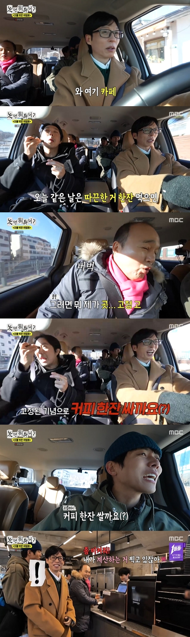 MBC‘놀면뭐하니?’캡처MBC‘놀면뭐하니?’캡처[뉴스엔서유나기자]방송인유재석이스윗한매력을드러냈다.2월7일방송된MBC예능'놀면뭐하니?'(이하'놀뭐')315회에서는유재석,하하,주우재,허경환이한파특집을김광규와함께했다.이날베이커리카페를발견한멤버들은커피한잔씩하고싶어했다.이에김광규가"제가고정된기념으로커피한잔살까요?"라며골든벨을울렸다."주위친구들이재석이한테얻어먹기만하냐고,우리엄마가왜자꾸재석이한테얻어먹냐고(한다)"는것.카페에도착한뒤김광규는카드를챙겼는데,유재석은제작진도생각하는모습을보였다.이에허경환이"제작진까지쏘냐"고묻자김광규는"제작진까지는조금"이라며예상보다커진커피판에당황한모습을보였다.하지만유재석은"제작진도쏴야지.그럼제작진은안먹냐.제작진도커피한잔해야지"이라며제작진을위하는모습을보였다.이후카페에서유재석이또제작진을챙기자김광규는제작진에게"한잔할래?"라고물었다.제작진이"저희가사먹겠다"는말에얼굴에화색이돈김광규는못이긴척멤버들이시킨커피와빵만결제했다.김광규는75,000원을결제하며카메라에본인의모습이담기는지굉장히신경쓰며생색내웃음을자아냈다.뉴스엔서유나stranger77@기사제보및보도자료[email protected]ⓒ뉴스엔.무단전재&재배포금지Copyright©뉴스엔.무단전재및재배포금지.