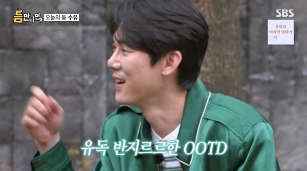 '틈만나면,'1일방송SBS'틈만나면,'캡처SBS'틈만나면,'캡처(서울=뉴스1)박하나기자='틈만나면,'유연석이때아닌화려한의상으로웃음을안겼다.1일오후에방송된SBS예능프로그램'틈만나면,'에서는장현성,김대명이'틈친구'로함께해수유의틈을찾아나섰다.게스트등장에앞서유연석이반짝거리는상의를입고등장해시선을모았다.이에유재석이"오늘무대있어요?"라며놀리기시작하자,유연석은"저녁에클럽가는거아니었어요?어릴때수유동에서나이트자주갔었다면서요"라고응수해웃음을안겼다.유연석은앞서화려한의상을보고논란을예상했다며스타일리스트에게"재석이형이분명히한마디할것이다,너무센것같다,무난한것입자"라고했었다고억울해했다.이어등장한장현성,김대명역시유연석의의상을지적하자유재석이"쟤무대올라간다"라고너스레를떨어재미를더했다.한편SBS'틈만나면,'은일상속마주하는잠깐의틈새시간사이에행운을선물하는'틈새공략'버라이어티프로그램으로매주화요일오후9시에방송된다[email protected]©뉴스1.Allrightsreserved.무단전재및재배포,AI학습이용금지.