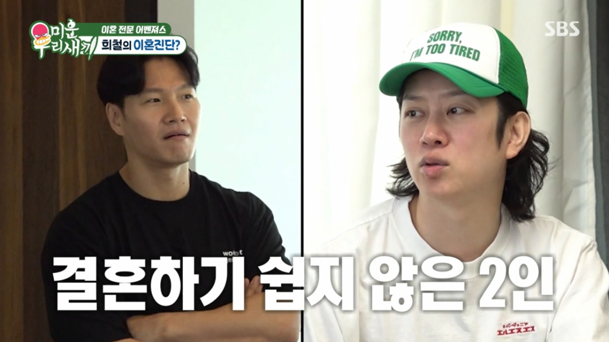 그룹슈퍼주니어멤버김희철이재산분할에대한입장을전했다./SBS'미운우리새끼'화면캡처[마이데일리=김하영기자]김희철이결혼과재산분할에대한입장을밝혔다.29일방송된SBS예능'미운우리새끼'에서는이상민,이동건,김희철이이혼전문변호사3인방박은주,양나래,박민철을만나상담을나누는시간이그려졌다.김희철은"사랑해서결혼했는데도저히못살겠어서이혼하는거잖아요.이혼사유중제일많은건뭐냐"고질문했고,양나래변호사는"통계상성격차이가1위지만실제로는불륜이많다"고답했다.변호사들은"최근엔중고거래앱으로불륜을시작하거나기혼자끼리불륜이늘고있다.임신중인여성만골라만나는남성도있다"고전해모두를충격에빠뜨렸다.이상민은"김희철이원래연락이잘안된다"며연애중에도그랬는지물었다.이에김희철은"의식해서연락을안하는게아니라나는놀땐오롯이내시간을갖는사람"이라고말했다.이를들은박민철변호사는"결혼하면위치공유,비밀번호공유는해야한다"고주장했고,김희철은"전여자친구가위치추적앱을설치하자고해서깐적있다.내가어디있고얼마나오래있었는지위치정보가너무자세히나와서바로지웠다"고과거경험을털어놨다.이동건이"주소까지나오냐"고묻자김희철은"정확히나오고그공간에얼마나머물렀는지도다표시된다"고덧붙였다.이후그는"결혼하고싶은마음은있다.하지만주변에반면교사되는분들이많아서,내가확실히책임질수있을때결혼할것"이라고말했다.이에박민철변호사는"그러면결혼못한다.'미우새'멤버중에김희철과김종국은결혼이쉽지않을것"이라고진단했다.김희철은"그래도난김종국보다나아.형은지갑을잘안여는데난열려있는사람"이라고강조했다./SBS'미운우리새끼'화면캡처하지만"결혼후아내가재산반나눠달라하면?"이라는질문엔"싫다.내거잖아.'네거탐안낼게,너도내거탐내지마'가내철학"이라며단호한모습을보였다.변호사들이"명의가본인이라도재산분할대상"이라고설명하자김희철은"슈퍼주니어활동열심히해서산집인데?나결혼안해"라고선언해웃음을자아냈다.한편,이상민은재혼과관련해"첫이혼은몰라서쉬웠고재혼은신중하게해서이혼안한다"고밝혔고,박민철변호사는"오히려재혼후이혼이가장어렵다.3혼부터는점점쉬워지는경향이있다"고말해모두를놀라게했다.Copyright©마이데일리.무단전재및재배포금지.