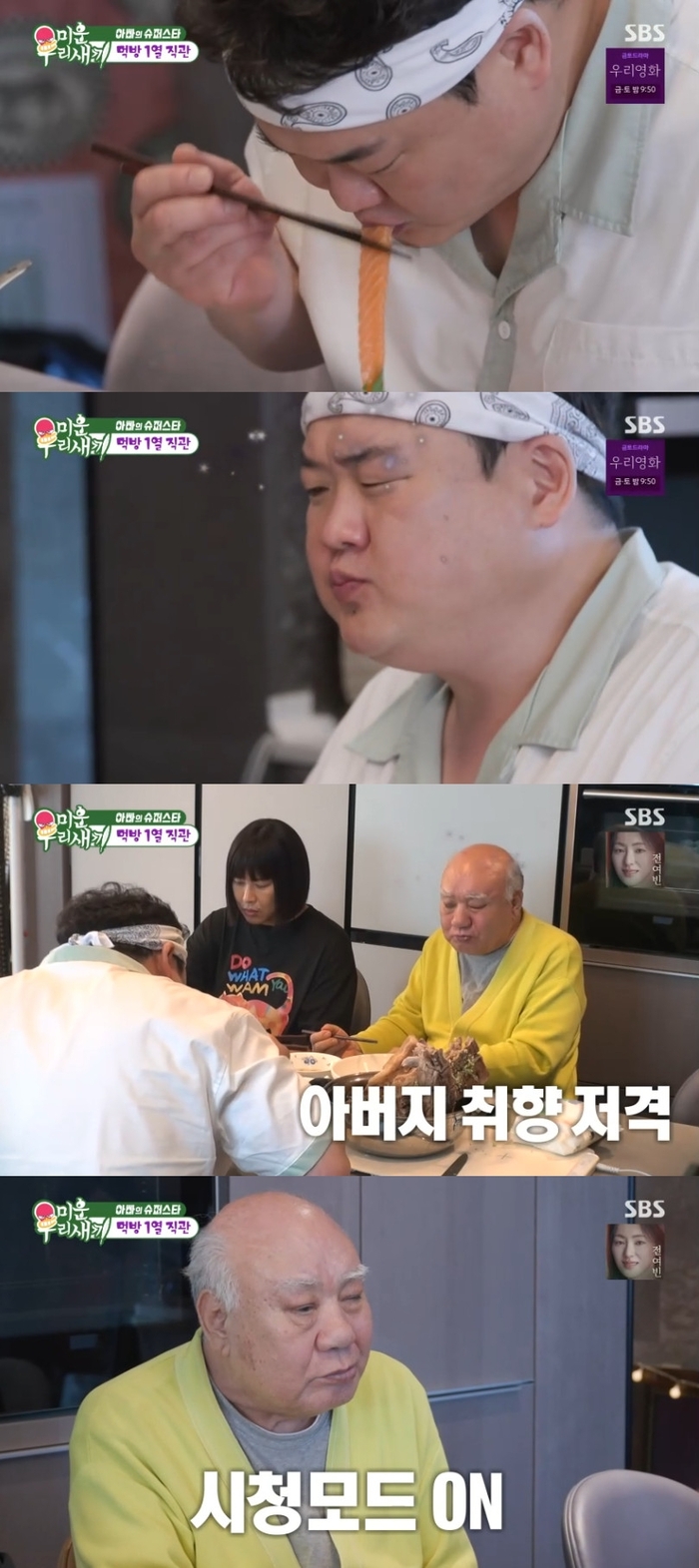 ‘미운우리새끼’사진|SBS정영주아버지가김준현을실제로만났다.29일오후방송된SBS예능프로그램‘미운우리새끼’(이하‘미우새’)에서김준현은평소김준현팬이라는정영주아버지를찾아갔다.이날방송에서김준현을본아버지는자리에서벌떡일어나더니“온다고미리얘기했으면플래카드라도걸어놨을텐데...대스타가와서”라며미소를지었다.김준현은“저도혈당약을먹은지꽤됐어요.그래서아버지제가오늘혈당스파이크는안오는데포만감은있고자극적이기도하고보상받는느낌의요리를오늘해드려도될까요?”라며아버지를위해요리하겠다고했다.김준현은순식간에저당특신인등뼈첨탑(랭쌥)과연어국수를요리해아버지에게대접했다.등뼈를맛본아버지는“맛있어~맛있게됐어!”라며만족했다.이어김준현이등뼈를뜯자아버지는“역시맛있게먹어!음식을즐겨그냥!그모습이참좋아”라며눈을떼지못했다.김준현이연어국수면치기를선보이자아버지는“맛있는소리네”라며팬심을보였다.일요일오후9시5분SBS에서방송된다.[서예지스타투데이객원기자]Copyright©스타투데이.무단전재,재배포및AI학습이용금지