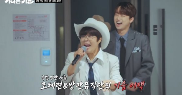 ⓒKBS2TV'방판뮤직:어디든가요'[스포츠한국김현희기자]'방판뮤직:어디든가요'가원조개가수조혜련과함께회사를기습어택한다.5일방송되는KBS2TV음악예능프로그램'방판뮤직:어디든가요'에서는서울강남구의패션회사를찾는'방판뮤직단'뮤지션들과특별게스트조혜련의모습이그려진다.이날'방판뮤직:어디든가요'팀은치열하게일하고있을직장인들에게음악으로파이팅을전달하라는미션을전달받고회사비밀잠입에나선다.직원들은영문도모른채상반기결산긴급회의로가장한대회의실에불시호출당한다.프로그램최초100%리얼기습공연을앞두고회의실을실시간모니터하던멤버들은"우리가들어갈분위기가아닌데?"라며긴장한다.명불허전축가장인조혜련또한"결혼식과다르게긴장된다.회의할때들어간적은없다"라며걱정을내비친다.심각한분위기를뚫고회의실에입성한'방판뮤직:어디든가요'팀의공연이어떻게흘러갈지관심이쏠린다.이가운데레전드코미디언이자개가수(개그맨+가수)의시초조혜련은무려20년만에KBS에서'아나까나'완곡을최초로선보인다.지난2005년발매당시수준미달,가사저속의이유로방송불가판정을받은'아나까나'가뒤늦게KBS심의를통과한것.이에조혜련은'방판뮤직단'이찬원,웬디,대니구와함께군무를연습하며KBS사상첫'아나까나'무대에대한열정을불태운다.ⓒKBS2TV'방판뮤직:어디든가요'이찬원은황가람이부른국민위로송'나는반딧불'을재해석한다.그는선곡이유로"겨울에친구들과강릉으로여행갔을때이노래를듣는데갑자기눈물이났다.오열하면서들었다.이노래가우리모두의마음을대변하는것같아서준비했다"라고전한다.'방판뮤직:어디든가요'에서막내로활약중인이찬원의무대는실제회사부서의막내직원을눈물짓게한다고해이들이나눌이야기에도궁금증이모인다.웬디와그의'찐팬'이함께하는특별한듀엣무대도펼쳐진다.웬디의무대에유독크게열광하던한회사원은"저의군생활과대학생활을레드벨벳과함께했었다"라며팬심을고백하고,웬디와'오르막길'로감격의하모니를이룰예정이다.현실에서잠시벗어나음악으로떠나는달콤한휴가를선물할'방판뮤직:어디든가요'는오늘(5일)오후10시40분방송된다.스포츠한국김현희기자[email protected]©스포츠한국.무단전재및재배포금지.