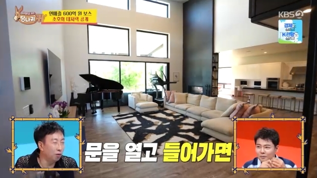 KBS2TV‘사장님귀는당나귀귀’캡처KBS2TV‘사장님귀는당나귀귀’캡처KBS2TV‘사장님귀는당나귀귀’캡처[뉴스엔서유나기자]연매출600억을달성한컵밥CEO송정훈의미국집이공개됐다.7월6일방송된KBS2TV예능'사장님귀는당나귀귀'(이하'사당귀')313회에서는컵밥으로미국의입맛을사로잡으며연매출600억기업을만든송정훈대표의집이공개됐다.이날송정훈의집이최초로공개됐다.탁트인창에높은층고,요식업대표답게넓은주방을자랑하는집이었다.송정훈은"6년전직접지었는데와이프가안을저는밖을인테리어했다"고밝혔다.집에는체육관못지않은헬스장,영화관,놀이터도있었고박명수는"집에영화관이왜있어"라며입을떡벌렸다.집규모는무려약570평이나됐다.MC들이"한국돈으로얼마정도냐"고묻자송정훈은"대충하면한15억정도"라고답했다.현재시세로는30억원가량이었다.박명수는이에"강남30평아파트가35억이다"라며부러움을감추지못했다.송정훈은4남1녀의자녀도공개했다."다복하다"는말에송정훈은"저희와이프가4명을낳고싶다고했는데저는2명을바랐다.'너가둘을원해?난4명을원하니까6명을낳자'고했다"고밝혔다.송정훈은"미국도5명낳으면혜택이있냐"는질문에"전혀없다"고답했다.한편송정훈은미국에60개,인도네시아에200개의컵밥매장을갖고있다.두바이,캐나다진출도앞두고있다.뉴스엔서유나stranger77@기사제보및보도자료[email protected]ⓒ뉴스엔.무단전재&재배포금지Copyright©뉴스엔.무단전재및재배포금지.