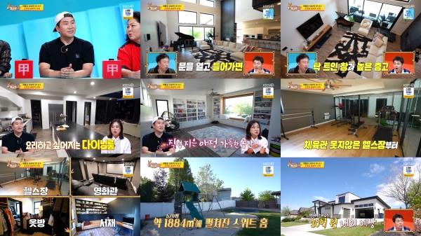 [TV리포트=이혜미기자]'컵밥신화'를이룬사업가송정훈이570평규모의미국집을공개했다.6일KBS2TV'사장님귀는당나귀귀'에선송정훈의보스라이프가펼쳐졌다.이날탁트인창과높은층고가인상적인송정훈의모던하우스가공개된가운데'사당귀'패널들은"집이엄청나게크다"며감탄했다.그말대로송정훈의집은570평규모로지하1층,지상2층으로구성돼있었다.헬스장,영화관등의공간까지갖춘대저택에박명수가"무슨집에영화관이다있나?"라며놀라워했다면김숙은"어디숨어있어도못찾겠다"라고말했다.더욱놀라운점은해당집의시세가한화로30억내외라는것.이에박명수는"우리나라30평짜리강남아파트가35억"이라며황당해했다.한편송정훈은슬하에5남매를둔다둥이아빠다.이날그는"아내는아이를네명낳고싶다고했고나는두명을낳고싶다고했다.그래서여섯명을낳자고결론을냈다"라고너스레를떨었다."미국도자녀를다섯명이나낳으면혜택이있나?"라는질문엔"전혀없다"라고답했다.이날송정훈은오남매의아침식사는물론도시락까지직접만들며좋은아빠의면면을뽐냈다.자녀들의등교도송정훈의몫.송정훈은"우리가바쁘다보니대화를할시간이없다.그래서아침에시간을내아이들과꼭대화를한다.이건내가해야하는것"이라며책임감을전했다.이에박명수는"내딸은택시타고가는데"라는말로큰웃음을자아냈다.이혜미기자[email protected]/사진='사장님귀는당나귀귀'방송화면캡처Copyright©TV리포트.무단전재및재배포금지
