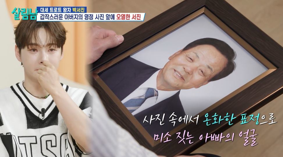 KBS2TV예능‘살림하는남자들’KBS2TV예능‘살림하는남자들’[뉴스엔이슬기기자]박서진이아버지의영정사진준비에오열했다.7월5일방송된KBS2TV예능'살림하는남자들'에는사진촬영에나선박서진부자가담겼다.이날박서진아버지는영정사진을찍겠다나섰다.지난방송에서는아버지의무릎정밀검사가이뤄졌고,연골판이찢어져보행이힘들다는진단이나왔다.박서진과형은몸도마음도약해져우울한아버지를달래기위해사진을찍었다.하지만아버지는"예쁜양복같은거없습니까"라고했고,영정사진을찍겠다는말에박서진은눈물을보였다.그는"그걸왜지금찍는데"라고했고,아버지는"너는몰라서그렇지.느그할아버지돌아가시고영정사진없어서그림을그려서했다.보기안좋았다"라며입장을전했다.이에대해박서진은"장수사진을찍겠다고하더라고요.영정사진을말좋게포장해서장수사진이지.형둘보냈을때도사진이없어서앨범뒤져가서.급하게만들어서영정사진을했거든요"라고입을열었다.아버지는"제대로된영정사진이없으니까.오늘좀행복한김에.아들이싫어해도난행복하게찍고싶었다"고했고,백지영은"이날이너무행복해서.이행복한마음을사진에담고싶으셨을거다"라며공감하는모습을보였다.하지만박서진은촬영내내계속울었다.그는상상하기도싫은부모님과의이별에울음을참지못했고"정말자신이더아프기전에.병에걸리고더초췌한모습으로얼굴변하기전에찍으려고하나.이런생각이들고아빠의마음도이해되면서.그런날이언젠가는올거잖아요.담담하게준비하는아빠마음이너무슬프더라"라고했다.박서진은사진을받아들고또오열했다.그는"잘해야겠다.손잡고좋은추억많이만들어야겠다.정말사진으로만남는순간이오면하고싶어도못한다.그전에좋은거많이하려구요"라고이야기했다.이에은지원은"저순간은누구에게나오는순간이라.공감을안할수가없다"라고했다.이어그는"준비없이부모님과의이별을맞은분들에게는이런시간이필요했을거다.멋진모습도담아드리고.저렇게못한자식이많다"라고했다.방송에는은지원의"저도못해드렸다"라는말과함께'지원아버지역시혼자영정사진을준비'라는자막이더해졌다.뉴스엔이슬기reeskk@기사제보및보도자료[email protected]ⓒ뉴스엔.무단전재&재배포금지Copyright©뉴스엔.무단전재및재배포금지.