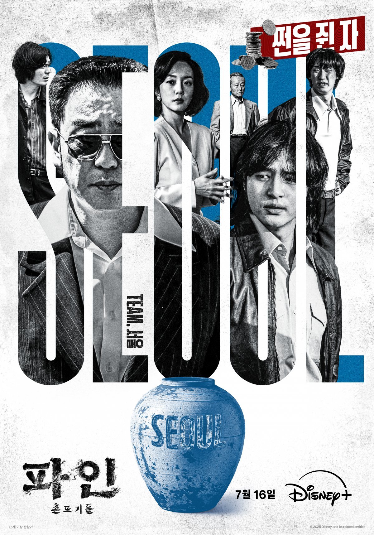 디즈니+오리지널시리즈‘파인:촌뜨기들’이서울·목포·부산세팀의욕망과수싸움을암시하는그룹포스터3종을공개하며본격적인서사의서막을열었다.사진제공|월트디즈니컴퍼니코리아바다속에묻힌보물선을둘러싸고얽히고설킨18인의욕망이본격적으로모습을드러냈다.디즈니+오리지널시리즈‘파인:촌뜨기들’이서울,목포,부산세지역을대표하는그룹포스터3종을공개했다.강렬한캐릭터군상과지역별보물도자기오브제가눈길을끄는이번포스터는각팀이맞붙게될신안앞바다의보물쟁탈전을예고하며기대감을끌어올린다.먼저‘쩐을쥔자’로요약되는서울팀은류승룡,양세종,임수정,김성오,김종수,이상진이중심을이룬다.카리스마넘치는‘오관석’과미묘한표정을짓는조카‘오희동’,자금줄‘양정숙’의냉철한아우라가얽히고,운전기사‘임전출’과골동품감정사‘송사장’,그리고그의소개로합류한‘나대식’의입체적인서사가암시된다.이들은돈을중심에두고보물을향한각기다른셈법을드러낸다.디즈니+오리지널시리즈‘파인:촌뜨기들’이서울·목포·부산세팀의욕망과수싸움을암시하는그룹포스터3종을공개하며본격적인서사의서막을열었다.사진제공|월트디즈니컴퍼니코리아‘바다를쥔자’인목포팀은홍기준,우현,이동휘,정윤호,임형준,김민,김진욱이합류해극의중량감을더한다.베테랑선장‘황선장’과도자기전문가‘하영수’,원칙주의경찰‘홍기’부터건달‘벌구’,머구리‘고석배’,다방레지‘선자’,그리고핵심단서인‘이복근’까지.이들이보여줄지역성과인간미,그리고예측불가한감정선이극의주요동력으로작용할예정이다.디즈니+오리지널시리즈‘파인:촌뜨기들’이서울·목포·부산세팀의욕망과수싸움을암시하는그룹포스터3종을공개하며본격적인서사의서막을열었다.사진제공|월트디즈니컴퍼니코리아마지막으로‘총을쥔자’부산팀에는김의성,원현준,권동호,이근욱,신창주가포진해긴장감을배가시킨다.사기꾼‘김교수’와그를보좌하는‘코치’,단단한눈빛의‘덕산’,도자기를쥔채위기에처한‘해골’과‘재떨이’까지,이들은보물선쟁탈전을무력으로견인할변수로작용할것으로보인다.연출을맡은강윤성감독은“모든캐릭터가주인공이라할수있을만큼각자의욕망과개성이뚜렷하다”며“보물을향한각팀의움직임이촘촘하게얽히며예측불가능한재미를만들어갈것”이라전했다.한편,‘파인:촌뜨기들’은1977년신안앞바다를배경으로펼쳐지는고전적구조의현대적변주극이다.한탕을노리는촌뜨기들의속고속이는수싸움을중심에둔이작품은7월16일3화공개를시작으로매주수요일총11화가디즈니+를통해순차공개된다.캐릭터의향연,지역감성,욕망의다층적충돌이빚어낼서사에시선이쏠린다.장은지기자[email protected]©스포츠동아.무단전재및재배포금지.