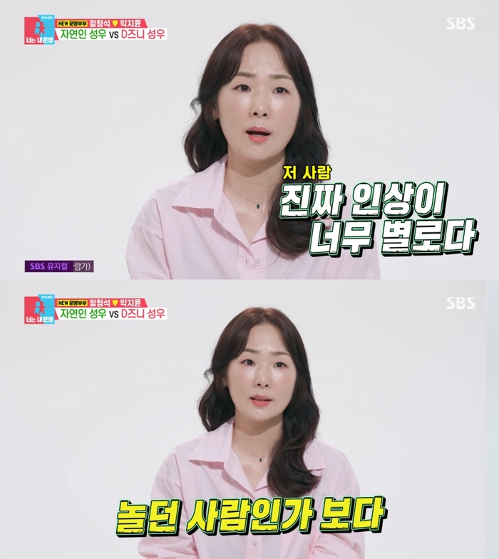 ‘동상이몽2’.사진ISBS‘동상이몽2-너는내운명’방송캡처성우박지윤이남편정형석의첫인상을떠올렸다.7일방송된SBS‘동상이몽2-너는내운명’에서는정형석,박지윤부부의일상이그려졌다.이날박지윤은정형석의첫인상을회상했다.박지윤은“내가KBS성우31기다.남편은한해후배로들어왔다.후배들이처음들어오면입방식을하는데그때처음봤다”고말했다.이어“남편이너무뾰족하게생겼었다.지금보다10kg더말랐었다.내가되게싫어하는스타일이었다.‘저사람인상이너무별로다’,‘놀던사람인가보다’라고생각했다.12명의후배중제일싫어하는후배였다”고했다.이에정형석은“사실나도‘저선배옆에는가면안되겠다’라고생각했다.되게깍쟁이스타일이었다.‘저사람은선배로만대하고선을그어야겠다’라고생각했다”고이야기했다.한편‘동상이몽2-너는내운명’은매주월요일오후10시10분방송된다.[이세빈스타투데이객원기자]Copyright©스타투데이.무단전재,재배포및AI학습이용금지