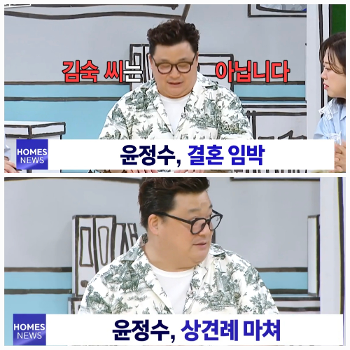 말없이웃었다.눈은그대로였고,말끝은조금떨렸다.그가처음으로그말을꺼낸건,모두가지켜보는방송이었다.하지만그순간,그자리는김숙앞이었다.윤정수가10일방송된MBC‘구해줘!홈즈’를통해결혼소식을전했다.이날방송에서윤정수는“과거를청산하고새로운출발을예고하는윤정수입니다”라고운을떼며,“소중한발표를하러나왔다.결혼을전제로만나고있는사람이있다”고밝혔다.그리고바로덧붙였다.“김숙은아니다.”말은농담처럼시작됐지만,표정은점점진지해졌다.윤정수는“예비신부는미모와지성을겸비한필라테스강사”라며“4~5개월전부터가까워져연인이됐다.신뢰를바탕으로마음을나누던중,최근결혼허락도받았다”고전했다.고개를들고말을잇던그가김숙쪽으로시선을던졌을때,한순간눈이흔들렸다.“그쪽집어르신들도다만났다.국민의염원이었던김숙앞에서말하는게가장나을거라생각했다”고했다.이어진고백은조심스러웠지만단단했다.“요트에서많이생각했다.썸이었고,지금은프러포즈를고민하는단계다.10년전알던동생이었고,최근들어식사하면서가까워졌다.”스튜디오안은웃음으로가득찼지만,말미는또렷했다.“결혼얘기를하는사이니까…키스는했다.”그리고조심스럽게말했다.“김숙이결혼식에서축사해줬으면좋겠다.”폭탄선언이지나간자리엔감정이남았다.농담과진심사이를오가는그의고백엔,오래참았던마음이묻어있었다.그말하나에계절이바뀌었다.한편윤정수는오랜예능활동속에서도꾸준히김숙과의찐친케미로사랑받아왔다.예비신부와의결혼식일정은아직미정이며,프러포즈역시준비중이라고밝혔다.[김승혜MK스포츠기자][ⓒMK스포츠,무단전재및재배포금지]Copyright©MK스포츠.무단전재및재배포금지.