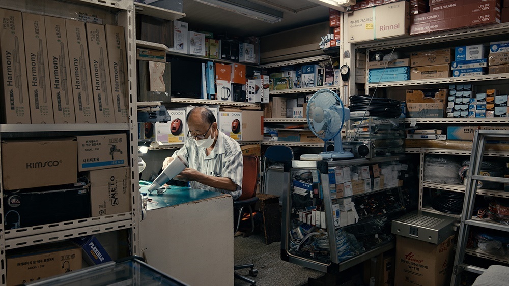 [독립예술영화개봉신상리뷰]일과>[김상목기자]고대그리스에헤시오도스란작가가있었다.다른이들이왕과영웅들의무용담을노래하던시절,그는소박한삶과노동의가치를교훈적인내용으로전했고,그결과최초의서민문학이라할만한업적을후대에남겼다.그의대표작은오늘날그리스신화를공부할때가장먼저접하게마련인<신통기(신들의계보)>와함께작가의철학이집대성된교훈시<일과날>이전한다.·국내에번역출판된판본에선거의대부분앞의두편이한데묶여있는데,처음엔누구나전반부에배치된<신통기>만읽고<일과날>은잘보지않는다.중구난방이던그리스신화의계통을일목요연하게정리한역작을보느라평범한서민의삶을예찬한뒤의내용은통눈에들어오지않은탓이다.하지만그렇게현실에존재함에도모두가외면하던소박한일상을포착했기에,작가는불멸의이름을역사에남길수있었다.다큐멘터리<일과날>은바로그런헤시오도스의위업을21세기한국에서재현하려는시도다.영화는고대ㄱ리스작가가그랬던것처럼,듣기만해도끌리는빛나는존재를보여주지않는다.평범한이들의삶과는하늘과땅차이,마치올림포스산위에서유희하듯인간의운명을좌지우지하던고대신들의기행을전시하는건차고넘친다는듯,카메라는그대척점에존재하는이들을조명한다.그여정에함께해보자.극한의일상재현을통해보여주려한것은?▲<일과날>스틸ⓒ스튜디오에이드영화는9명의등장인물을통해미디어에선오히려소외된우리시대'장삼이사'들의삶과노동을조망한다.그저평범하기에오히려특별해보이는건,그만큼관객이미디어에서쏟아내는'도파민중독'에뇌가절어있기때문일것이다.너무흔하다보니오히려놓치는것들,조그마한휴대전화액정화면에온통시선을빼앗겨막상바로옆에있는이웃을헤아리지못하는한계가자아낸기현상이다.9명이차례로등장한다.그들의'일과삶'을묵묵히조명하는카메라화면속에서종종그들의입에서대수롭지않다는듯살아가는이야기,지금하는고민이툭튀어나왔다사라지곤한다.극적인분위기고조나구구절절설명이따로붙지않기에관객은눈과귀를쫑긋세우고오히려집중해야한다.그렇게응시하고있으면서서히뭔가가짚이고보이기시작한다.그단계에진입했다면관객은감독이기대한궤도에탈없이안착한셈이다.어떤기준과경로로섭외했을까저절로궁금해지는9명은나이도경력도각기동떨어져있다.너무공통점이없기에오히려지금한국사회의침묵하는다수,목소리를들을수없는이들을상징하는기운이조성된다.어떤이들이등장하기에그럴까?<일과삶>은의도적으로사건을부각하고기승전결을강조하지않는다.그대신에정말일상밀착카메라처럼9명개별의일상을화면에복원또는재현하는데오로지집중한다.선택이명확한태도다.그런의도에충실히부합하고자전개역시그들의하루를오롯이관객에게전하는데맞춰진다.물론실제일상의시간을영화라는매체특성상축약하고편집할수밖에없지만,최대한현실의그것과닮은꼴로그리려한다.그해답은하루의시작과끝의무한반복이다.실제일상이그러하니까.그게대체온라인에홍수를이룬브이로그영상과뭐가다른지의아할테다.얼핏외형만보면사실딱히다를것도없다.하지만보이는현상적인이미지는유사할지몰라도,접근방식과태도는딴판,아니대척점에가깝다.브이로그가자신,특히타인에게보여주고픈단면을부각하는데맞춰진다면,<일과날>속인물들은뭐이런걸찍냐고반문할듯한일상,그들이수천일을반복해온대수로울게없는모습으로공개된다.'먹방'을찍는다고치면,매일먹는가정식과기발한퓨전레시피과시의차이인셈이다.'태도'의차이는이영화의결정적개성이자특징으로기능한다.우리곁에있지만잊힌존재를찾아서▲<일과날>스틸ⓒ스튜디오에이드9명의일과삶을들여다볼시간이다.대체어떤이들이등장할까?아침이밝아오고초로의남자가하루를준비한다.노동을감당하기위해소박한아침밥상을받는다.그가누구인지아무런설명도없다.화면이바뀌면작은공장에서한남자가혼자작업하는중이다.그는마네킹을만들고있다.등신대의큼직한형체를조립하고접착제를골고루바른다.뉴스에서스치던최첨단자동화공장과는동떨어진수공업장인의면모가물씬풍긴다.이번엔정신없이빠르게돌아가는컨베이어벨트가기다렸다는듯등장한다.중년여성이수북히쌓인채앞을지나치는더미속에서재활용플라스틱을분리한다.그는종일반복되는노동을묵묵히행한다.누군가문을열고불을켜며일과를준비한다.점점사라지는백반집사장님이다.사장이라지만그외에는다른일손은보이지않는다.수십개가넘는반찬을손수만드는침묵의노동을그는묵묵히수행한다.맥주가좋아수제맥주장인을목표로일하는청년은양조장에서세심하게주조과정을관리한다.외국어학원에서사무직으로일하는젊은여성은흔히떠올리는사무실업무,행정처리와복사,출력에여념이없다.골목길조그만전파사를운영하는노인은수십년내내휴일없이정시에출근해자리를지킨다.오만가지전자제품을척척다루고수리하며침침해질법한눈을집중해대상을응시한다.손놀림이예사롭지않다.▲<일과날>스틸ⓒ스튜디오에이드카메라가탁트인야외로향한다.한없이펼쳐진해변에서염부가염전을가꾸는중이다