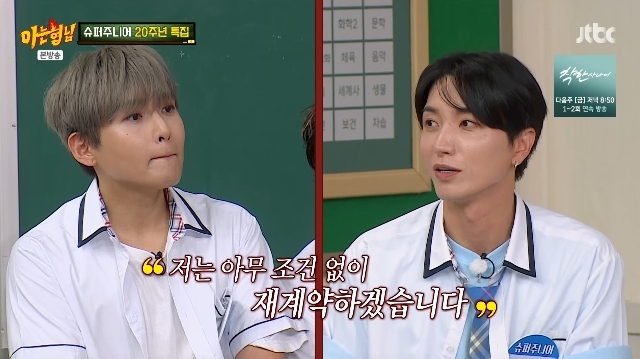 JTBC‘아는형님’캡처JTBC‘아는형님’캡처[뉴스엔서유나기자]려욱의슈주재계약조건이공개됐다.7월12일방송된JTBC예능'아는형님'(이하'아형')490회에서는데뷔20주년을맞이한슈퍼주니어가완전체로형님학교에전학왔다.이날멤버들은려욱이최근실세멤버로올라온사실을전했다.이번앨범을위해다같이연습하는데한명이라도개인스케줄로빠지면대놓고못마땅해했다는것.이특은려욱이이러는이유가그룹에대한애정때문이라며"우리가SM재계약할때이야기를다듣잖나.려욱이는다른조건아무것도안하고이이야기만했다더라.슈퍼주니어다같이할수있게해주시고1년에한번앨범을내게해달라고.슈퍼주니어에만신경써주시면아무조건없이하겠다고했다더라"고전했다.이에감동받은형님들이"려욱이가리더해야겠네"라고하자멤버들은"려욱이가리더하는순간우리스케줄다없어진다"고반대했다.려욱은이에부정하지않고"난단체만했으면좋겠다"며개인활동용납불가의입장을고집해웃음을자아냈다.뉴스엔서유나stranger77@기사제보및보도자료[email protected]ⓒ뉴스엔.무단전재&재배포금지Copyright©뉴스엔.무단전재및재배포금지.
