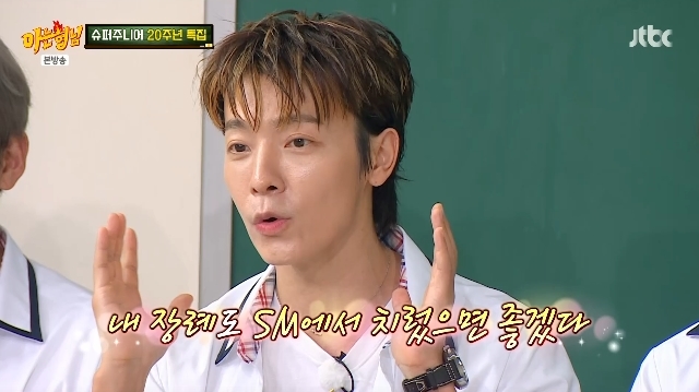 JTBC‘아는형님’캡처JTBC‘아는형님’캡처[뉴스엔서유나기자]슈퍼주니어동해가처음SM엔터테인먼트를나갔을때의심경을털어놓았다.7월12일방송된JTBC예능'아는형님'(이하'아형')490회에서는데뷔20주년을맞이한슈퍼주니어가완전체로형님학교에전학왔다.이날규현,동해,은혁이SM을나가소속사를이적한사실이언급됐다.규현은현재안테나소속이며,동해와은혁은새회사를차려CEO가됐다.동해는"회사를차리는게꿈이기보다우리것을만들어보고싶었다.나이가더들기전에.우리가최우선적으로슈퍼주니어활동을할테니도전해보고싶었다"고SM을나간이유를밝혔다.강호동은이런동해가평소감성적인만큼SM을나가며많이울었을거라고짐작했다.이에은혁은"우리가아예SM을확나가기보다같이협업을하는데아예확떨어졌다고생각했나보다.몇달동안회사주변을서성이면서울었다더라진짜로.근처를걸으며울었다고하더라"고폭로했다.동해는"내가15살에들어왔는데SM말고다른회사는생각해본적이없다.난죽어도,내장례도SM에서치렀으면좋겠다고생각할정도였다.SM이내집인것"이라고털어놓았다.하지만서장훈은"원래저런애들이가장먼저나가"라고결국은퇴사를한현실을짚었고,김희철은"예전에나한테회사나가지말라고멱살잡아놓고지가나갔다"며서운해해웃음을자아냈다.뉴스엔서유나stranger77@기사제보및보도자료[email protected]ⓒ뉴스엔.무단전재&재배포금지Copyright©뉴스엔.무단전재및재배포금지.