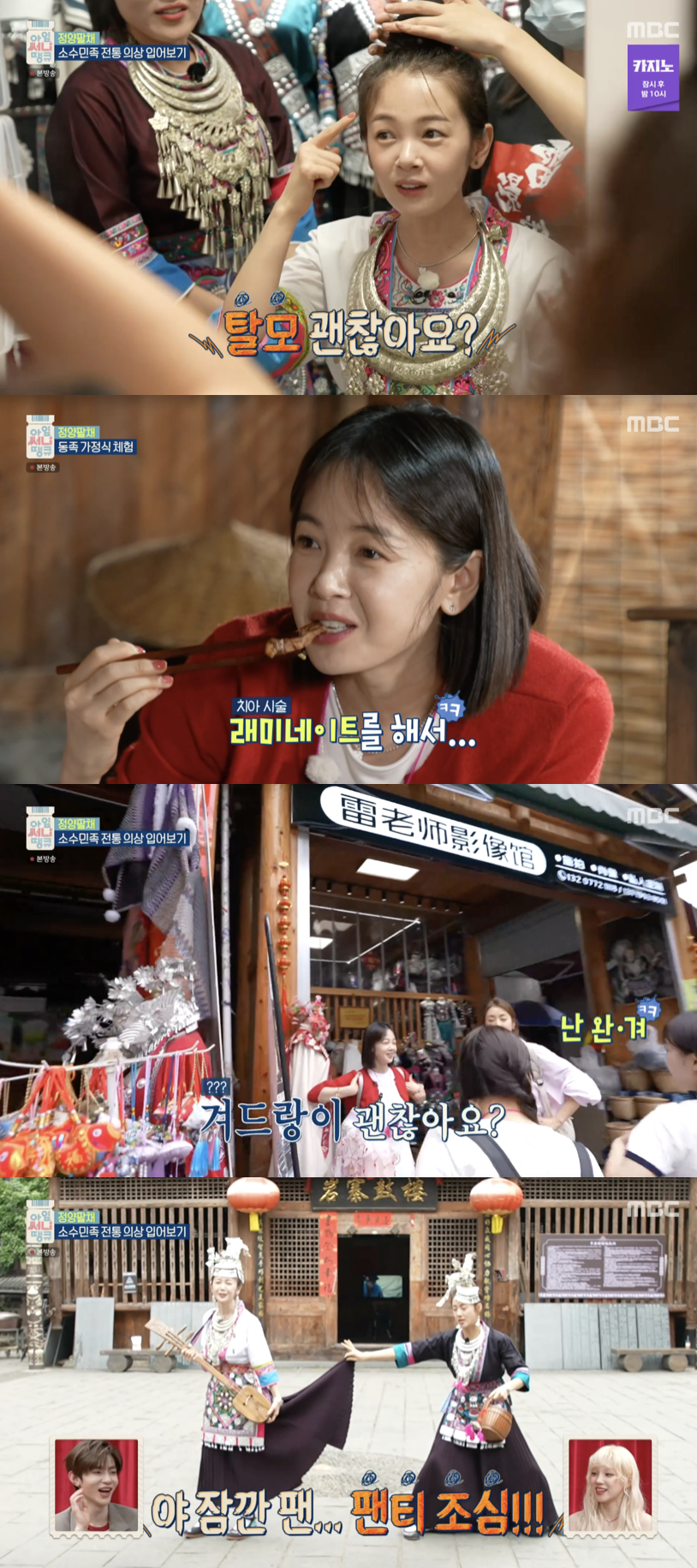 [스타뉴스|정은채기자]/사진='아임써니땡큐'방송화면캡쳐배우김보미가털털한매력으로시청자들에게웃음을선사했다.12일방송된MBC예능프로그램'아임써니땡큐'에서는'써니즈'강소라,김보미,김민영,이은지가함께떠난중국광시좡족자치구우정여행의첫날이공개됐다.멤버들은소수민족전통마을'정양팔채'를찾아이국적인풍경을즐기며색다른하루를보냈다.이날멤버들은지어진지100년이넘은전통가옥에서동족가정식을체험했다.이국적인육포형태의음식을접한김보미는망설이다가도"저는라미네이트라서포기하겠다"라며솔직하게선언해현장을웃음바다로만들었다.이어멤버들은전통의상대여소를찾아중국전통복장체험에나섰다.민소매디자인이많은의상들을살피던김보미는갑자기"겨드랑이괜찮아요?보여주세요"라며멤버들에게솔직하게묻는등특유의털털한매력을뽐냈다.또한전통스타일의메이크업과헤어세팅을받는과정에서도거침없었다.머리를단정히하나로쫙묶자김보미는"여기빈데괜찮아요?탈모괜찮아요?"라고덧붙여폭소를유발했다.실제로그는둘째아이출산100일도안된시점으로,탈모고민이솔직하게드러나공감을자아냈다.의상착용후사진을찍을때도김보미의날것그대로의입담은계속됐다.치마자락을들어화려한연출을도와주던강소라를향해"팬티조심해라"라고재치있게일침을날리며현장을웃음바다로만들었다.정은채기자[email protected]©스타뉴스&starnewskorea.com,무단전재및재배포금지