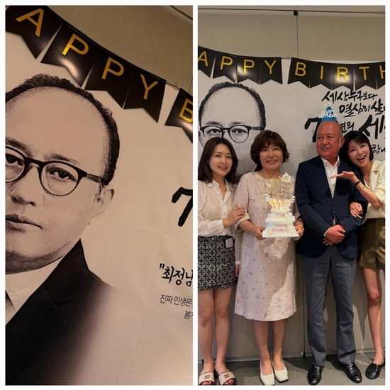 소녀시대수영과뮤지컬배우최수진자매가아버지의칠순을축하했다.11일,최수진은SNS에“아빠의멋진인생을축복하며”라는글과함께가족사진여러장을공개했다.사진속에는“70년의세월,존경하고사랑합니다”라는문구가새겨진대형현수막과케이크,그리고가족의미소가담겨있었다.아버지는‘HAPPYBIRTHDAY’꼬깔모자를쓰고환하게웃었고,어머니는두딸과함께케이크를들고서있었다.11일,최수진은SNS에“아빠의멋진인생을축복하며”라는글과함께가족사진여러장을공개했다.사진=SNS첫번째컷에서수영은한손으로아버지를가리키며환하게웃었다.흰셔츠에올리브빛반바지를입고밝은표정으로,장난스럽고도사랑스러운분위기를만들었다.자매는한쪽팔로아버지와어머니의팔짱을껴안은채카메라앞에섰고,그장면은인위적이지않았다.케이크위에는“최정남아버지의70년세월을존경하고사랑합니다”라는문구가꽂혀있었고,그문장하나로모든감정이압축됐다.꽃다발을앞에두고박수를치는아버지의표정은기쁨을넘어평온함이었다.그는말대신웃었고,딸들은그순간을더없이소중하게감싸안았다.70이라는숫자는무겁지않았고,대신따뜻한시간이하나씩더해졌다.한편최수진은뮤지컬배우로활동중이며,뮤지컬‘지킬앤하이드’,‘사의찬미’,‘록키호러쇼’등에서활약해왔다.수영은그룹소녀시대멤버로서최근연기활동과방송을병행하고있다.[김승혜MK스포츠기자][ⓒMK스포츠,무단전재및재배포금지]Copyright©MK스포츠.무단전재및재배포금지.