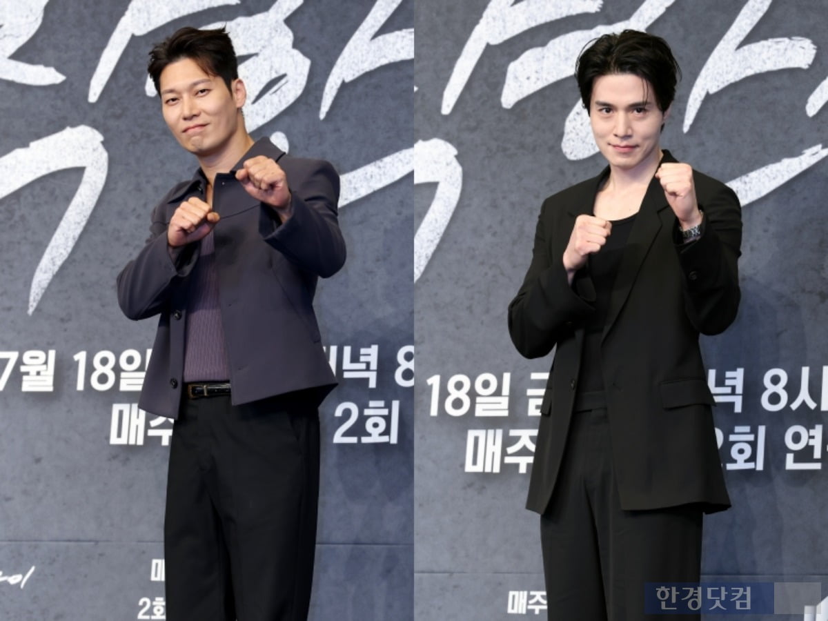/사진=변성현기자'착한사나이'이동욱,박훈이다시한번대립각을예고했다.이동욱은14일서울구로구한호텔에서진행된JTBC새금요드라마'착한사나이'제작발표회에서상대역인이성경과멜로에대해"도움을많이받았다"며"삶에찌든석철이에너지를받아바로전환될수있도록해줬다.덕분에잘찍었다"고호흡을자랑했다.이성경은"바라만봐도설레는첫사랑오빠비주얼이라아주자연스럽게몰입되고,모든게다용서되고감싸줄수있었다"고응답해폭소케했다.'착한사나이'는한때시인이자소설가를꿈꿨던건달에게가수를꿈꾸던첫사랑이나타나면서펼쳐지는이야기를담았다.'파이란'송해성감독과'서울의달'김운경작가,'야당'김효석작가가의기투합했다.이동욱은주인공박석철을연기한다.석철은어린시절헤밍웨이를좋아하고,시인을꿈꿨지만원치않게건달이됐다.입은거칠어도예의는바르고,제법의리가있으며,문득떠오른옛사랑의기억에아파할줄아는인물로첫사랑강미영(이성경분)과운명적재회후또한번인생의소용돌이에휘말린다.박훈은한때석철과같은조직에몸담았지만,현재는라이벌조직으로간강태훈역을맡았다.조직은바뀌어도석철과는여전히가까운사이였지만,노래하는미영에게한눈에반해석철과위태로운삼각관계에처하게된다.특히박훈과이동욱은전작영화'하얼빈'에서대립했기에또다시삼각관계로갈등을이룬다는점에서주목받는다.박훈은"저도건달역할이처음"이라며"이동욱씨와때론형제같지만얼굴도붉히면서즐거웠던기억이난다"고지난촬영기를돌아봤다.그러면서"이성경씨가피아노를치고노래부르는장면은저만봤다.이동욱씨는못보고"라고자랑하며"그장면을보면서비현실적이라고느꼈다.왜그런관계가되는지납득이되는순간"이라고전해호기심을자극했다.한편'착한사나이'는오는18일밤8시50분방송된다.김소연한경닷컴기자[email protected]©한국경제.무단전재및재배포금지.