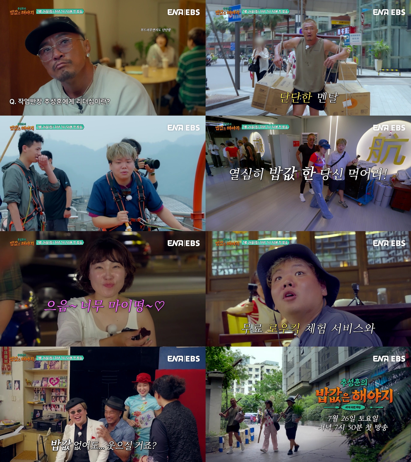 파이팅넘치는추성훈과곽준빈,이은지의목숨(?)을건도전이펼쳐진다.iMBC연예뉴스사진오는7월26일(토)저녁7시50분에첫방송될ENA,EBS공동제작‘추성훈의밥값은해야지’는‘아조씨’추성훈이세계극한직업에도전하고땀흘려번밥값만큼즐기는현지밀착리얼생존여행기.공개된메인예고영상에는작업반장추성훈을필두로한밥값원정대의다이내믹한여정과우정이담겨흥미를끈다.추성훈이‘작업반장추성훈에게리더십이란?’이라는질문의답변을생각하는찰나,뒤에서지켜보던이은지가“부드러우면서도단단함”이라고선수를치는모습이웃음을자아낸다.이어이은지의말처럼부드러운근육을장착한추성훈은삽질도거뜬히하고,어깨에무거운짐을실어나르면서도“고생하는건당연하다고생각한다”고단단한멘탈을자랑해탄성을일으킨다.그런가하면체력과정신력모두끝판왕급인추성훈을따르는곽준빈,이은지의리얼생존여행이궁금해지는상황.특히고소공포증이있는곽준빈이밥값을하기위해아찔한높이의건물에서노동을시작해눈길을끈다.한걸음떼기도어려운듯“하지마”라며무서워하는곽준빈이과연공포감을떨치고밥값을할수있을지호기심을유발한다.또한추성훈,곽준빈,이은지가극한직업을통해힘들게번밥값으로현지의맛있는음식들을즐기는순간들이침샘을자극하고있다.곽준빈은“확실히고생하고먹으니까훨씬맛있다”,이은지는“너무맛있어”라고행복해해이들의취향을저격할음식의향연도기대된다.뿐만아니라곽준빈이추성훈의무료로우킥체험서비스를만끽하는장면,추성훈의귀지무한제공사건까지전세계를대환장케미스트리로물들일세사람의유쾌한에피소드도예고돼첫방송이더욱기다려지고있다.‘추성훈의밥값은해야지’는오는7월26일(토)저녁7시50분ENA,EBS에서첫방송된다.iMBC연예장다희|사진출처ENA,EBSCopyright©MBC연예.무단전재및재배포,AI학습금지.
