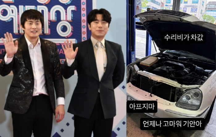 [스포츠조선닷컴이게은기자]배우이시언이자신에게차를선물한만화가겸방송인기안84에게다시금고마움을전했다.15일이시언은"수리비가차값.아프지마.언제나고마워기안아"라며근황을전했다.함께공개된사진에는기안84에게받은350만원중고차가담겼다.이시언은차를수리하러왔다가새삼차를향해애틋한마음이든모습.차를선물한기안84도언급해눈길을끌었다.지난해9월기안84는'시언이형차뽑아줬습니다'라는영상을통해자동차선물과정을공개한바있다.당시기안84는"시언형에게자동차가있는데그건형수님이자주타고다녀서중고차가하나필요하다고한다"라며이시언과중고차매매상사로향했다.이시언은350만원2007년식체어맨을마음에들어했고기안84는이차를이시언에게선물해감동을안겼다.기안84는"매번받기만하고시언이형생일을한번도못챙겨줬는데그래도이렇게차를사드리니마음이편하다"라고털어놨다.한편이시언과기안84는지난6월종영한MBC'태어난김에세계일주4'에함께출연했다[email protected]©스포츠조선.무단전재및재배포금지.