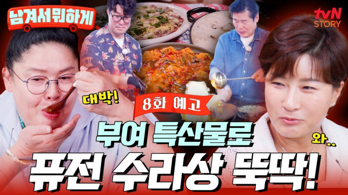 '남겨서뭐하게'부여수라상투어tvNSTORY'남겨서뭐하게',조현재-정일우-이연복-오세득과함께한부여'왕들의밥상'오늘(16일)저녁8시에방송되는tvNSTORY의‘영자와세리의남겨서뭐하게’(이하'남겨서뭐하게')8화에서는지난주에이어천년고도부여를배경으로한두번째미식투어가펼쳐졌다.홍현희,김민종,이원종과함께한‘스타맛집’투어에이어,이번에는‘왕들의밥상’이라는주제로배우조현재,정일우와셰프이연복,오세득이맛친구로합류해기대를한껏높였다.'남겨서뭐하게'부여수라상tvNSTORY이번‘왕들의밥상’미식투어에는이름에걸맞게‘왕경력직’배우들과‘요리왕’셰프들이총출동했다.과거드라마‘서동요’에서백제무왕을연기했던배우조현재는당시를재현한듯한백제왕의의상을입고나타나시선을사로잡았다.그는“‘서동요’촬영당시바쁜스케줄탓에부여의음식을제대로즐기지못해항상아쉬웠다”고전하며,MC이영자와박세리의안목을전적으로믿는다며부푼기대감을드러냈다.배우정일우역시위엄있는곤룡포를입고왕으로완벽변신해등장부터감탄을자아냈으며,어머니때문에작품준비나휴식을위해부여를자주찾아왔다고밝히며부여와의깊은인연을과시했다.'남겨서뭐하게'부여맛집tvNSTORY한편,MC이영자의‘먹자톡’한통에한달음에달려온중화요리의대가이연복셰프는모두에게부여의특산물을활용한특별한요리를선보이기위해개인요리도구까지살뜰히챙겨와남다른열정을보였다.여기에이연복셰프와함께‘흑백요리사’로유명한오세득셰프까지합류해기대감을더했다.오세득은과거이영자와예능프로그램에함께출연했을당시,‘여자친구와결혼은언제할거냐’는그녀의뼈있는질문에진지하게결혼을고민하고결심하게되었다며,이영자가자신의결혼에결정적인계기를만들어준비하인드스토리를공개해모두의호기심을자극했다.'남겨서뭐하게'부여수라상연잎향가득한첫번째코스와130년고택의웰컴푸드‘왕들의밥상’미식투어의첫번째코스는부여의대표특산물인‘연(蓮)’을활용한요리였다.맛집사장님이직접담근향긋한연꽃막걸리와연잎만두,연근김치만두가식전입맛을돋우었다.이어서연근을갈아만든특별한소스가곁들여진연근돈가스와,찹쌀과각종잡곡,팥,해바라기씨등을넣어당일새벽에딴신선한연잎으로감싸찐연잎밥까지등장하며꽃부터잎,뿌리까지어느하나버릴것없는연의진가를제대로보여주었다.은은한연잎향이밴찰진연잎밥은고소한고등어구이와환상의궁합을자랑하며모두의젓가락질을멈추지못하게만들었다.코스의마지막을장식한버섯전골은황금팽이버섯,만가닥버섯등다양한버섯이아낌없이들어가맛과건강을동시에잡았고,연잎을넣고푹우려낸깊은맛의육수는모두의극찬을받았다.이어진투어는130년의역사를자랑하는부여의유일한민박집에서계속되었다.이곳에서는저녁식사대신특별한‘웰컴푸드’로일행을맞았다.마늘,당귀,부추와함께가마솥에서푹익혀낸야들야들한닭백숙과,간마늘을듬뿍넣은초장소스가등장해놀라움을자아냈다.부추와닭백숙,초장이라는의외의조합이선사하는매력에푹빠진멤버들은급기야수저도없이손으로닭을뜯어먹으며무아지경먹방을선보였다.부여특산물로펼쳐진두스타셰프의요리대결본격적인2차코스로는이연복,오세득두스타셰프가부여의특산물을재해석하는퓨전수라상요리대결이펼쳐졌다.두셰프는각자의주특기를총동원하며본격적인실력발휘에나섰다.대결과정에서는특제만능소스레시피공개,프랑스의고전요리기법시연,화려한불쇼등다채로운볼거리가이어졌고,그과정에서MC박세리의숨겨진요리재능까지드러나시청자들의눈을사로잡았다.과연부여특산물로완성된이연복의어향동고와한국식위기삼정,그리고오세득의프랑스식육회와버섯솥밥중어느요리가왕들의입맛을사로잡았을지그결과에관심이집중된다.tvNSTORY‘영자와세리의남겨서뭐하게’가지난주에이어부여에서의두번째미식투어‘왕들의밥상’편을방송했다.이번여정에는‘왕전문배우’조현재와정일우,‘요리왕’이연복과오세득셰프가맛친구로합류했다.조현재와정일우는각각백제왕과곤룡포의상을입고등장해콘셉트에재미를더했다.첫번째코스로는연잎밥,연근돈가스,버섯전골등부여특산물인연을활용한다채로운요리를맛보았고,이어서130년역사의민박집에서가마솥닭백숙으로2차먹방을시작했다.하이라이트는이연복과오세득셰프가부여의특산물을주제로펼치는퓨전수라상요리대결이었다.화려한불쇼와특급레시피가공개되는가운데,과연두셰프가어떤창의적인요리로왕들의입맛을사로잡았을지기대를모으고있다.한편,이전방송애서는부여에서박찬호단골갈비찜맛집과암소한우맛집을탐방헀다.이다겸기자bnt뉴스Copyright©bnt뉴스.무단전재,재배포및AI데이터활용금지