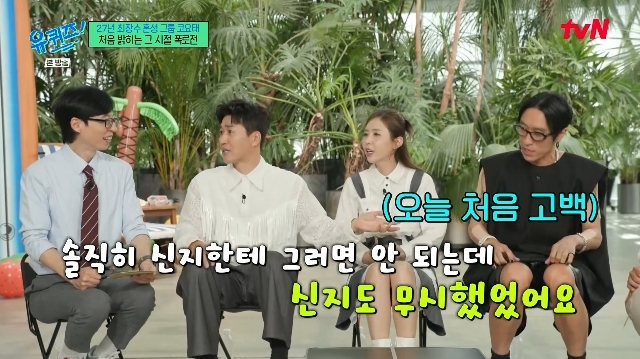 tvN‘유퀴즈온더블럭’캡처tvN‘유퀴즈온더블럭’캡처[뉴스엔서유나기자]코요태의우정을드러내는김종민의미담이공개됐다.7월16일방송된tvN예능'유퀴즈온더블럭'(이하'유퀴즈')302회에는27년차최장수혼성그룹코요태김종민,빽가,신지가게스트로출연했다.이날신지의무대울렁증이언급됐다.한동안무대만올라가면바들바들떨었다는신지는"그러고나서한3년동안슬럼프를깊게겪었고마음에병이생기며활동이어려워졌다"고말했다.신지는무대울렁증이무대를하다가갑자기생겼다며"카메라리허설까지너무잘했다.생방송에서갑자기와버리니까어떻게끝냈는지도모르겠고너무힘들더라.그때는실시간검색어도있고댓글도쓸수있었다.'목소리는왜안떨려?쟤는뭔가잘못됐다'고얘기를하니까더문을닫고나올수없더라.저를보면다그렇게생각하실것같아서"라고토로했다.신지는당시에대해"생각도하고싶지않다.저에게힘든일이라.웬만하면자료화면도쓰지말아달라고부탁하고다닐정도다.그장면을보면제가또손을떨고있더라.나는꼭코요태의김종민과빽가사이에있어야빛이나는아이구나,그래야자신감을얻는구나를다시한번느끼게됐다"고전했다.결국3년의공백기를가졌다는신지는"일을갑자기쉬어서경제적으로힘들때(김종민에게)도움을청했는데흔쾌히도움을줬다.그러면서저를힘들어할때까지내버려둬준것같다.네가힘들때까지힘들어보고나오고싶을때나오라고.이런마음이었던것같다"며고마움을드러내뭉클함을자아냈다.뉴스엔서유나stranger77@기사제보및보도자료[email protected]ⓒ뉴스엔.무단전재&재배포금지Copyright©뉴스엔.무단전재및재배포금지.