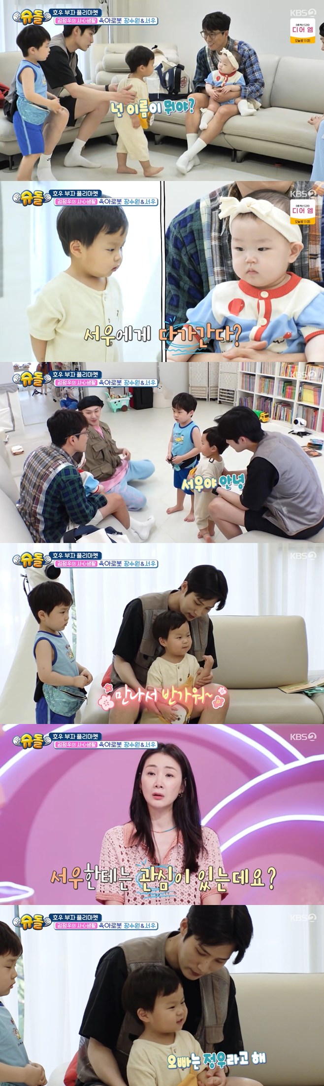 티브이데일리포토[티브이데일리이기은기자]‘슈돌’김준호아들정우,장수원딸에게다정함이폭발했다.16일밤방송된KBS2예능프로그램‘슈퍼맨이돌아왔다’에서는김준호아들은우정우군을만난셀러브리티상황이공개됐다.이날김준호는아이들을위한육아플리마켓을열었다.인기폭발인두형제를만나기위한유명인사들의발길이끊이지않았다.우선유튜브인기커플민수라라부부가아이를임신한채등장했다.이들은정우의특기인박치기까지이벤트처럼진행하며,안면을텄다.뒤이어눈길을끈것은젝스키스장수원와이프사이에서나온딸장서우양이었다.40대에귀하게얻은딸장서우양은귀여운미모가폭발했다.서우는울지않고얌전한아가였다.여동생경험이별반없는정우는용감하게서우에게다가가“이름이뭐야?오빠는정우라고해”라고인사를건넸다.@1급기야정우는만난지10분만에서우에게정이가는듯,하트제스처를마구날렸다.이에박수홍은“우리집와서는재이한테아가씨,이러면서마음을흔들어놓더니저기가선저러네”라고격분(?)했다.정우,은우모두서우에게푹빠진모습을보이며“예쁘다”를연발해웃음을자아냈다.@1[티브이데일리이기은기자[email protected]][Copyrightⓒ*세계속에新한류를*연예전문온라인미디어티브이데일리(www.tvdaily.co.kr)/무단전재및재배포금지]Copyright©티브이데일리.무단전재및재배포금지.