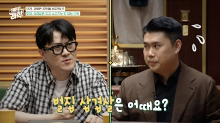 오는18일오후10시50분방송(MHN강혜민인턴기자)요리서바이벌'흑백요리사'우승자'나폴리맛피아',권성준셰프가'취미는과학'에출연해고기굽기의비법을설명한다.오는18일방송되는EBS'취미는과학'42화'요리,과학은무엇을바꾸었나?'에서는MC데프콘,성균관대이대한교수,광운대장홍제교수,과학커뮤니케이터항성과함께권성준셰프가출연해요리와과학의연결고리를탐구한다.방송에서는요리와화학의유사성이흥미롭게그려진다.장홍제교수는"화학자치고요리를못하는사람은없다"며,실험논문과요리레시피의유사성을비교해눈길을끈다.전혀달라보이는두세계는의상부터도구까지의외로닮은점이많다고.이에데프콘은"화학논문은거의요리책"이라며놀라움을표현했다.또한고기굽기의과학적원리를주제로,데프콘이"고기를못굽는건감이없는거냐?"고묻자,권성준은"과학적이해부족"이라고답해화학자들을당황하게만들었다.실제로고기굽기의세계는수많은화학반응이작용하는과학의집합체다.장홍제와권성준은마이야르반응을이해하면누구나고기를잘구울수있다고설명한다.셰프가꼽은'완벽한고기굽기'의기준과그에숨은과학적원리가흥미롭게펼쳐지며셰프와화학자의환상적인호흡이기대를모은다.전세계를휩쓴K-컬처의열풍,이제는파인다이닝도'K-푸드'가대세다.권성준은"요즘유럽에서된장,고추장,간장을안쓰는레스토랑을찾기어려울정도"라며'장'이새로운글로벌트렌드로자리잡았다고전했다.분자요리이후셰프들이주목하는과학트렌드부터'월드베스트50레스토랑'에이름을올린한식당의정체까지.과학자들도놀란세계미식의흐름이방송에서공개된다.한편,'취미는과학'42화는오는18일오후10시50분,EBS1TV에서방송되며,다시보기는EBS홈페이지를통해제공된다.사진=EBSCopyright©MHN.무단전재및재배포금지.