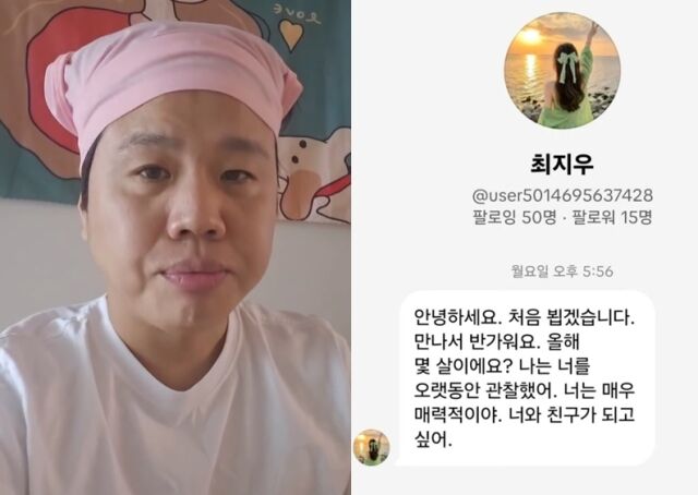 정승환소셜미디어[마이데일리=임현주기자]개그맨정승환이배우최지우로부터DM을받고화들짝놀랐다.정승환은17일소셜미디어에"존대말을할꺼야반말을할꺼야?ㅋㅋ#스팸"이라는문구와함께한장의사진을업로드했다.정승환은황당한DM메시지를캡처한사진을공개했다.메시지를보낸이는‘최지우’라는이름을쓰고있었고,프로필사진에는여성의뒷모습과석양이어우러진감성적인사진이담겨있었다.해당메시지에는“안녕하세요처음뵙겠습니다만나서반가워요올해몇살이에요?나는너를오랫동안관찰했어,너는매우매력적이야,너와친구가되고싶어”라는문구가담겨있어보는이들을폭소케했다.누리꾼들은“최지우가갑자기왜?"“정승환님관찰당해서좋으실듯”“매력적이래요ㅋㅋㅋ”라며댓글을통해유쾌한반응을보였다.한편,정승환은2011년KBS26기공채개그맨으로데뷔했다.'개그콘서트'에서활약했으며,드라마'풀하우스''멘붕스쿨''로비스트'등에출연했다.지난2015년결혼해슬하에1남을두고있다.Copyright©마이데일리.무단전재및재배포금지.