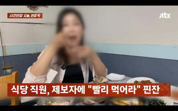 ⓒJTBC'사건반장'[스포츠한국신영선기자]혼자식사하러온유튜버에게퇴장을요구한여수의한유명식당이논란에휩싸였다.17일방송된JTBC'사건반장'의'오늘,반장픽'코너에서는여수시의한식당에서벌어진논란이소개됐다.해당영상에는유튜버가혼자식당을찾아2인분을주문한뒤식사하던중,식당직원이약20분만에자리를비워달라며사실상퇴장을종용하는장면이담겼다.이를촬영한영상이공개되며온라인상에서는불친절논란이확산됐다.ⓒJTBC'사건반장'논란이커지자여수시는해당식당에대한실태조사에착수했다.여수시식품위생과에따르면식당측은시관계자에게"유튜버가동의없이촬영을진행해불편했다"며"목소리가커오해가생긴것"이라고해명한것으로알려졌다.여수시는이번사안과관련해해당식당에친절교육과행정지도를실시하고,추가로청결상태등위생점검도진행할계획이라고밝혔다.스포츠한국신영선기자[email protected]©스포츠한국.무단전재및재배포금지.