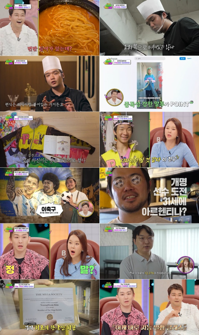 ‘세상에이런일이’광기의대한민국특집(사진:SBS)SBS‘와!진짜?세상에이런일이’가‘광기의대한민국특집’으로시청자들에게빅재미를선사했다.17일방송된SBS‘와진짜세상에이런일이’8회에서는‘광기의대한민국특집’을맞아‘편식하는주방장’,‘악마는하진이를입는다’,‘내이름은000’,‘지구지능일짱’까지열정적인인물들의이야기들이펼쳐졌다.스튜디오4MC전현무-백지영-김호영-수빈과게스트곽튜브는유쾌하면서도놀라운사연들에찐리액션을보내며시청자들의몰입도를끌어올렸다.이날오프닝에서전현무는“레이저덕을톡톡히보는요즘,주위서‘전현무얼굴미쳤다!’는말을자주듣는다”며“와!진짜?”를외쳤다.‘광기의대한민국특집’에맞춰자신의‘미친미모’를셀프홍보한건데,이에백지영은“그건‘와!진짜?’가아니고‘에잇!진짜’다”라고응수해스튜디오를웃음바다로만들었다.그럼에도그는시술로완성된V라인을강조하며“관리해야돼~”라고‘짠광기(?)를드러내2차폭소탄을날렸다.유쾌한분위기속,전현무는‘절친’여행크리에이터곽튜브를게스트로소개했다.곽튜브는“어릴때부터즐겨보던프로그램에나와서영광”이라고훈훈하게화답했다.뒤이어‘편식하는주방장’이란제목으로이학사씨의이야기가소개됐다.“93년생으로,17세때부터양식,일식,중식요리를해왔다”는그는“양파를먹기싫어해편식짬뽕을만들게됐다”고밝혔다.이학사씨가만든‘편식짬뽕’은국물과면만있는,건더기가전혀없는이색적인짬뽕으로최근SNS에서큰화제를모았다.직후,그는일반짬뽕과똑같이모든재료가들어간조리과정을공개했는데,이를본전현무는“건더기를걸러주는게핵심이었다.육수는당연히맛있을것”이라고감탄했다.이학사씨는“최근유명먹방크리에이터가촬영을왔을때간짜장을맛있게드셨지만양파를남기셨다.편식간짜장도만들어볼생각”이라고이야기했다.나아가그는“사실이런메뉴를선보이려면용기가필요하다.‘요리가장난이냐?’는말을들을수있기때문이다.하지만요리에대한마음하나만은진심이다.편식추구는미식!”이라고자신만의요리소신을강조해박수를받았다.다음으로,‘악마는하진이를입는다’편의주인공인17세예비패션디자이너이하진학생이출연했다.독특한패션감각과자신만의스타일을담은숏폼콘텐츠로1200만뷰를기록한이하진학생은“하라주쿠펑크록스타일을좋아한다.자유롭게,개성있게입는타입”이라고말했다.직후그는숏폼제작과정을공개하면서자신이리폼하거나만든의상들도선보였다.이하진학생은“무지개바지가너무입고싶어서직접만들었다.개성넘치는작업이입소문을탔는지,제일좋아하는디자이너인제레미스캇이제SNS에댓글을달아주기도했다.너무행복해서3시간동안소리질렀다”며행복해했다.곽튜브는“저도강민경씨가제SNS에댓글을달아줘서기뻐날뛴적이있다”고폭풍공감했다.이하진학생은“앞으로제레미스캇과컬래버레이션을할정도로유명해지고싶다.하고싶은것을뚝심있게하다보면언젠가사람들이알아봐주지않을까”라고소신을밝혔다.세번째로,축구에미쳐이름까지바꾼‘내이름은000’의주인공이등장했다.그는“제이름은이축구다.축구를사랑해약8년전에개명했다.또한축구선수에도전하기위해31세에아르헨티나로떠났다”며자신만의광기를드러냈다.직후,이축구씨가아르헨티나로떠난모습과현지에서축구선수로생활하던영상이공개됐는데,4MC는“너무대단하다”며그를‘리스펙’했다.이축구씨는“제가체육교사였는데,학교에서가장많이한말이‘꿈에도전하라’는거였다.그런데저는정작도전해본적이없어서서른이넘어아르헨티나로간것”이라고털어놨다.오는10월결혼을앞두고있다는그는예비신부와함께축구공으로만든청첩장을돌리는가하면,“결혼식도축구장에서할것”이라고알렸다.이에곽튜브도“손흥민선수도저정도는아닐것같다”며그의미친축구사랑에‘엄지척’을보냈다.마지막으로‘지구지능일짱’의주인공인IQ로세계1위김영훈씨가등장했다.10년전IQ220으로‘영재발굴단’에출연했다는그는“멘사수치로IQ276을기록하며최대치를찍었다”며“IQ세계1위타이틀보유자”라고밝혔다.김영훈씨는“내한계가궁금해져IQ를끌어올렸다”며자신만의IQ를상승비법을깜짝방출했다.이어그는“생활습관에서지적인활동을유지하는게비법이다.매년대학에등록해사회학,기악,언어학,철학,심리학등다양한과목을공부했다”고설명했다.제작진이준비한암기력테스트에서도그는45개숫자를듣고역순으로외워모두를소름돋게만들었다.더욱이김영훈씨의자녀도두뇌놀이를통해천재성을보여줘2차충격을안겼다.수빈은“아들이아빠를닮았다”라며대를이은천재성에감탄했으며,김영훈씨는“IQ세계1위라는타이틀만큼세상을더발전시켜야한다는사명감이있다.아들이존경할만한아빠이자어른이되고싶다”고해,시청자들의응원을받았다.SBS‘와!진짜?세상에이런일이’는매주목요일밤9시방송된다.박지혜기자[email protected]뉴스연예팀기사제보[email protected]©bnt뉴스.무단전재,재배포및AI데이터활용금지