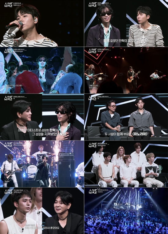 MnetMnet‘라이브와이어’가발라드부터메탈까지,다양한장르의진심을담은특별한무대로콘서트급열기와감동을선사했다.지난18일(금)방송된Mnet‘라이브와이어’5회에서는정승환,이찬혁,YB(윤도현,박태희,김진원,허준)그리고엑스디너리히어로즈(이하엑디즈,건일,정수가온,O.de,JunHan,주연)가출연,각기다른음악적색깔을가진아티스트들이모여세대와장르를넘나드는독특한무대를펼쳤다.콘서트를방불케하는역대급무대가시청자들에게호평을받으며이날방송은1.2%의최고시청률을기록(Mnet·tvN합산,AGB닐슨유료가구기준),화제성을가늠하는핵심지표인X(구트위터)실시간트렌드에도2위까지오르며뜨거운반응이이어졌다.첫번째무대는정승환이꾸몄다.‘하루만더’를시작으로‘너였다면’과‘이바보’를차례로부른정승환은관객들을감성의바다로이끌었다.그는“군악병으로복무하면서‘너였다면’을부르면군인들이큰함성은물론우렁차게떼창을해줬다”고털어놓았고,정재형은“남자들이가장힘들때가군대다.그때많이헤어진다”고말했다.정승환은“그래서노래할때우시는분들도계셨다”고하자,코드쿤스트는“저도이등병때헤어졌다”며누군가를향해“잘지내니?”라고말해스튜디오를웃음바다로만들었다.이어등장한이찬혁은자신만의독창적아이디어로물들인‘돌아버렸어’무대로관객들에게특별한경험을선사했다.그는이곡에대해“타이틀곡후보까지갔던노래라너무아까워서오늘처음으로무대를만들었다”고설명했다.그후,오랜만에만난정승환과의‘찐친케미’를발산했다.정승환은“찬혁씨를오랜만에본다.어렸을때매일장난치고놀았는데그때기억이스치면서이렇게못본사이에멋진예술가가돼있구나싶었다.음악도,퍼포먼스도다멋있다”며박수를보냈다.두사람은코드쿤스트가“어릴때만나서음악하던사이였는데,둘다30살이됐다.서로에게한마디씩해준다면?”이라고묻자,이찬혁은“벌써10년이넘었다.음악하면서오래가는게중요하다는걸느꼈다.우리두사람모두오래오래이런자리에함께있으면좋겠다”고말했다.그의진중어린답변에,장난기가발동한정승환은“오늘찬혁이를만나면이말은꼭해주고싶었다.전화번호좀알려줘”라고받아쳐폭소를유발했다.코드쿤스트는“톰과제리같은관계”라며웃음을터트렸다.더불어이날이찬혁은2집타이틀곡‘비비드라라러브’무대를방송최초공개,한편의뮤지컬을보는듯파격적인무대로신선한경험을선사해큰반향을이끌었다.YB는히트곡‘박하사탕’을부르며등장,단번에스튜디오를콘서트장으로탈바꿈시켰다.30년경력의저력은무대에그대로묻어났고,2MC정재형,코드쿤스트,이찬혁은물론관객들까지들썩이게했다.이찬혁은“무대내내춤췄다”며“최근YB앨범을듣고너무멋있어서배우고싶었는데,나와주셔서영광”이라고소감을밝혔다.또한윤도현과이찬혁의남다른인연이공개됐다.이찬혁은“윤도현선배님은저에게잊을수없는목소리다.오디션때‘우승자는악동뮤지션’이라고말씀해주신분”이라고고백하자,윤도현은“사실당시악동뮤지션이유일하게보석처럼빛났다.연주도하고창작도하고.솔직히처음밝히는데‘쟤네들이일등했으면좋겠다’라는생각을했었다”고털어놔훈훈함을안겼다.윤도현은또“댓글중‘찬혁이하고싶은거그만해’라는글이있는데‘왜그만해야해,하고싶은거다해’라고대댓글을달고싶었다”며이찬혁의음악과행보를응원했다.서로를향한깊은존중과배려덕에YB와이찬혁이함께꾸민‘파노라마’무대는관객들에게전율돋는감동과환희를선사했다.그어디서도볼수없었던무대로분위기를역대급으로끌어올린YB는‘나는나비’로정점을찍었다.흡사2002년못지않은함성과떼창을유도해그야말로관객과하나된무대를완성했다.마지막으로는밴드엑디즈가윤도현과함께‘iNSTEAD!(feat.윤도현)’무대로열기를이어갔다.정재형은“컬래버무대정말멋있었다.올해본무대중최고”라며극찬한후,“원래윤도현씨와같이부른노래죠?”라고물었다.이에엑디즈건일은“이곡의후렴에강력한그로울링을추가하고싶었다.때마침SNS에서(윤)도현형님이대학축제에서부른‘뽀로로’메탈버전이화제가됐다.그영상을보고신선한충격을받고부탁드리게됐다”고비하인드를전했다.더불어YB는“엑디즈를너무응원하고싶어지목하게됐다.훨씬많은사람들에게메탈베이스음악을소개할수있겠다는생각이들었다”며남다른애정을드러냈다.두밴드는‘Rebellion(feat.XdinaryHeroes)’무대를방송최초공개하며,세대와장르를넘나드는진심의무대를선보였다.관객들은열정적으로반응하며콘서트장을방불케할정도의뜨거운열기를보였다.이날‘라이브와이어’는그어디서도볼수없는동료뮤지션간화합의무대를통해음악을사랑하는리스너들의가슴을울렸다.한편,‘라이브와이어’는단순한무대를넘어,‘음악’을통해아티스트와아티스트,관객과관객그리고무대와시청자간의특별한연결을만들어가는혁신적인음악예능프로그램으로,매주금요일저녁7시Mnet,tvN에서동시방송된다.[MBN스타박소진기자[email protected]]<CopyrightⓒMBN(www.mbn.co.kr)무단전재및재배포금지>Copyright©MBN.무단전재,재배포및AI학습이용금지.