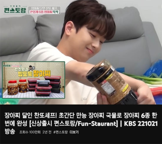 (엑스포츠뉴스이정범기자)이찬원의'편스토랑'장아찌조리영상이유튜브에서100만조회수를돌파했다.지난2022년10월유튜브'KBSEntertainment'채널에는"장아찌달인찬또셰프!초간단만능장아찌국물로장아찌6종한번에완성[신상출시편스토랑/Fun-Staurant]|KBS221021방송"이라는제목의영상이게재됐다.해당영상은KBS2TV'신상출시편스토랑'의2022년10월21일방송분으로,이찬원이직접장아찌6종을만드는과정을담고있다.영상속이찬원은간장,설탕,식초,소주를섞은국물로고추,쪽파,대파,마늘,미나리등다양한채소장아찌를만들었으며,남은국물로김장아찌까지완성했다.이찬원은요리중간중간흥겨운노래를곁들여요리실력과함께트로트가수로서면모를동시에보여줬다.해당영상은공개된지2년이지난현재까지도꾸준히조회수가증가하고있으며,최근100만뷰를돌파했다.이러한기록은그의남다른인기를실감케한다.한편,이찬원은현재JTBC'톡파원25시',KBS2TV'불후의명곡','방판뮤직:어디든가요'등에서고정출연자로활동중이다.또한,그가출연했던'셀럽병사의비밀시즌2'는오는9월2일부터정규방송으로편성된다.사진=KBSEntertainment유튜브채널이정범기자[email protected]©엑스포츠뉴스.무단전재및재배포금지.