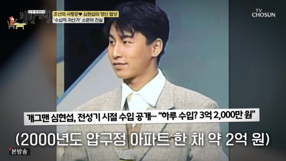 [TV리포트=양원모기자]심현섭이전성기시절엄청난수입을공개했다.20일저녁TVCHOSUN'식객허영만의백반기행'에서는올해데뷔31년차를맞은심현섭과아내정영림이허영만과경남양산을찾는모습이그려졌다.지난4월결혼한심현섭은같은방송사프로그램'조선의사랑꾼'에서103번째소개팅으로11세연하영어강사정영림을만나결혼에골인했다.허영만이심현섭의전성기를언급하며"그때벌어놓은것없냐"고묻자,심현섭은"30대초반에행사한번에1000만원씩받았다"고밝혔다.제작진은이와함께"2000년대초하루스케줄17개를소화했다"는심현섭의과거발언을자막으로덧붙였다.당시압구정아파트한채가격은약2억원이었다.허영만이"대부분연예인들이딴짓하다가다까먹더라"고하자심현섭은아내를힐끔본뒤"(나는)주식한것없고고스톱도못친다.라스베이거스(카지노에)들어갔다가현기증때문에1분만에나왔다"며"누굴빌려준적도없다.어디간거지?"라고스스로궁금해했다.정영림은심현섭과의첫만남을회상했다.정영림은"처음엔상대가심현섭이란사실을알고소개팅을거절했지만,주선자의설득끝에만남을진행했다"며"어머니도오래모셨고,책임감도있는착한사람이라는친구의말에소개팅을승낙했다"고떠올렸다.심현섭도"(정영림을만나러)서울에서울산으로기차를타고내려가는데기분이좋았다.소개팅하고집에올라오는데도기분이좋았다"며운명처럼느꼈던당시를떠올렸다.이어"결혼후첫생일에장모님이40찬생일상을차려줬다"며"장모님께감동을받았다.생일상은집에서먹어야한다"고고마움을나타냈다.정영림은남편의매력으로"말을재밌게잘이끌어주는게있다.얘기하다보면대화가잘통한다"고꼽았다.허영만은두사람을보며"그나이에이런미인을만날수가있다니"라며"두분이결혼정보회사를하면좋겠다.(둘을보면서)'사람들이늦어도갈수있겠구나'라고생각할수있다"고제안했다.'식객허영만의백반기행'은허영만이소박한동네밥상에서진정한맛의의미와가치를찾는프로그램이다.매주일요일저녁7시50분TVCHOSUN에서방송된다.양원모기자[email protected]/사진=TVCHOSUN'식객허영만의백반기행'방송캡처Copyright©TV리포트.무단전재및재배포금지