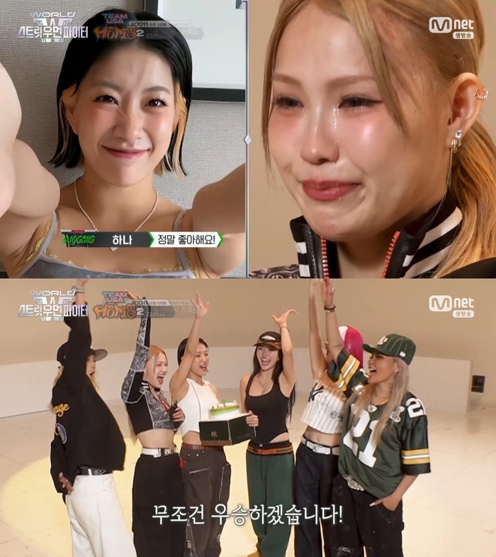 ⓒMnet'월드오브스트릿우먼파이터'[스포츠한국김현희기자]일본팀오사카오죠갱이'스우파3'에서최종우승했다.22일생방송된Mnet'월드오브스트릿우먼파이터'에서는최종우승크루를결정하는파이널이펼쳐졌다.이날파이널에진출한에이지스쿼드,모티브,오사카오죠갱은OST미션과크루아이덴티티미션의결과물을공개했다.세미파이널에서최종탈락한한국팀범접멤버들은무대위가아닌방청석에서파이널에함께했다.오사카오죠갱하나의친동생인그룹트와이스모모,지효,가수최예나,에이비식스이대휘,배우천우희,한예리등도방청석에서모습을보였다.'스트릿우먼파이터2'우승크루인베베의리더바다리도방청석에서파이널경연을지켜봤다.ⓒMnet'월드오브스트릿우먼파이터'파이트저지중한명인박진영은신곡'개츠비'의퍼포먼스를두고에이지스쿼드의안무를선택해파이널에서합동무대를선보였다.박진영은무대뒤쪽에설치된세트위에올라가노래를불렀고,에이지스쿼드가앞쪽에서춤을췄다.박진영은무대도중앞으로나와에이지스쿼드와호흡을맞췄다.이과정에서리더카에아가박진영의볼에입을맞추는퍼포먼스를했다.파이널최종순위는사전투표30%,실시간투표70%,피날레스테이지가산점50점등을합산해결정됐다.ⓒMnet'월드오브스트릿우먼파이터'가장먼저발표된최종3위는미국팀모티브였다.모티브는사전투표280점,실시간투표600점등총880점을받았다.최종1위는오사카오죠갱이차지했다.사전투표300점,실시간투표700점으로총1000점을획득했다.리더이부키는"진짜너무너무감사하다"고한국어로인사한뒤"오늘까지열심히해서정말다행이다.이건저희의청춘이었다.다들같이즐겨주셨다면정말감사할것같다"고말했다.2위인에이지스쿼드는사전투표290점,실시간투표650점에피날레가산점50점을더한총990점을받았다.리더카에아는"에이지스쿼드는끝이아니다.계속해서성장할수있도록하겠다,여러분들이저희를계속볼수있도록"이라며"우승은못했지만평생갈우정을얻었다"고소감을전했다.스포츠한국김현희기자[email protected]©스포츠한국.무단전재및재배포금지.