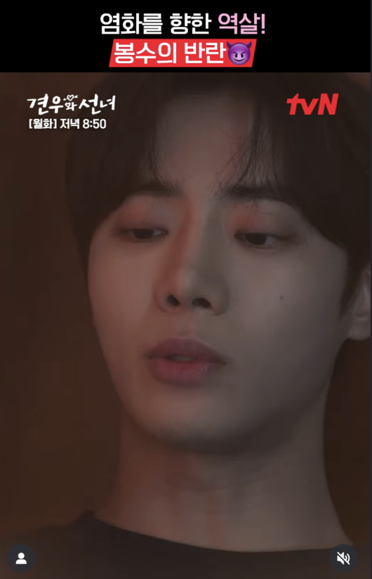 [OSEN=박소영기자]'견우와선녀’가새드엔딩으로달려갔다.tvN월화드라마‘견우와선녀’(연출김용완,극본양지훈,기획CJENM,제작스튜디오드래곤·덱스터픽쳐스·이오콘텐츠그룹)10화에서는배견우(추영우분)의몸을차지한악귀봉수(추영우분)가폭주했다.박성아(조이현분)가자신을천도하려는것을알게된것.여기에봉수가깃들어있던은가락지를손에넣은염화가저승사자를소환하면서상상도못한반전이찾아왔다.저승사자가봉수도,염화도아닌동천장군을데려가는엔딩은모두를충격에빠트렸다.예측불가한전개에시청자반응도폭발했다.10화시청률은수도권가구기준평균4.2%최고4.8%,전국가구기준평균4.4%최고5.1%를기록,케이블과종편을포함한동시간대1위를이어갔다.tvN타깃인남녀2049시청률역시전국기준최고1.9%로전채널1위를차지했다.(닐슨코리아유료가구기준)이날악귀봉수가배견우의몸을차지한내막이드러났다.바로염화의계략이있었기때문.귀신과엮여피를보면된다는말에배견우를다치게한것이었다.염화의도움으로배견우의몸을뺏은봉수지만,그의뜻대로악신이되고싶지는않았다.사람으로살고싶어서배견우의몸을빼앗았다는봉수의속내는안타까웠다.봉수의고백이사랑받고싶다는말처럼들린동천장군은박성아에게너무밉게만보지말고마음을들여다보라고조언했다.배견우를지키기위해서는봉수를지켜야한다는것.봉수가배견우의몸으로시간을보내는동안배견우는봉수의기억속을헤맸다.그곳에서학도병두사람을발견한배견우.귀신의시간축시에배견우를불러낸박성아는봉수가귀신이된이유를알아볼것을부탁했다.한편,염화는봉수가몸주신으로올생각이없다는것을눈치채고그의마음을흔들기로했다.배견우로지내는것에만족하던봉수는염화의한마디에혼란에빠졌다.박성아가축시에배견우를불러낸다는것.여기에염화는박성아의진짜마음이궁금하지않냐며봉수를자극했다.염화의도발에넘어간봉수는축시에배견우대신눈을떴다.봉수는자신을대할때와달리따뜻한박성아의포옹,그리고자신을천도할방법을찾겠다는말에상처받았다.박성아의마음을알게된봉수는엇나가기시작했다.배견우의꿈이었던양궁을그만두겠다고하는것도모자라자신을배견우라부르라고했다.여기에학도병참전추념비앞으로박성아를데려간봉수는귀신이된이유를말하며,자신이깃들어있던‘은가락지’를추념비앞에묻었다.그모습을지켜보던표지호(차강윤분)는박성아와배견우를함부로대하는봉수를가만히보고있지않기로결심했다.염화를찾아간표지호는이대로배견우의몸을뺏길수밖에없는것인지물었다.마지막기회라고생각한염화는표지호를이용해서봉수가깃들어있던‘귀물’은가락지를손에넣는데성공했다.염화는은가락지를깨뜨려저승사자를소환했다.박성아와동천장군도저승사자로부터봉수를보호하기위해굿을시작했다.동천장군은저승사자가찾아오지못하게봉수의위치를숨기고,박성아는저승사자를잘못된방향으로유인했다.작전이제대로먹히는듯했지만,봉수가예상치못한변수를불러왔다.참을수없는고통에몸부림치던봉수는죽어야하는것은자신이아닌염화라며저승사자를부르는‘사자주문’을읊었다.하지만저승사자가찾아간사람은염화가아닌동천장군이었다.동천장군이인간부적이되어염화를보호하고있었던것.염화를지켜낸동천장군이세상을떠나는엔딩은마음을아프게했다.과연동천장군을마지막으로악신이되기위한조건을모두갖춘봉수가어떤선택을할지,뒤늦게동천장군의진심을깨달은염화에게어떤변화가찾아올지이목이집중된다.tvN월화드라마‘견우와선녀’11화는오는28일(월)저녁8시50분방송된다./[email protected][사진]제공Copyright©OSEN.무단전재및재배포금지.