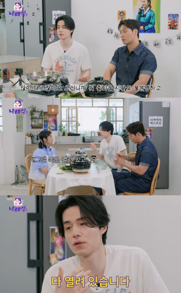 [TV리포트=남금주기자]박나래가이동욱에게해명을요구했다.23일유튜브채널'나래식'에는드라마'착한사나이'의이동욱과박훈이등장했다.이날박나래는이동욱의등장에"1년만에드디어그를모셨다"라고알렸다.이동욱은만나자마자박나래쪽으로향하며"조세호결혼식때나래가저한테왔다"라고말문을열었다.이동욱은"'오빠저희나래식좀'이라고해서'나래야.그래.잘알지.고생이많다'라고했다.'오빠나래식좀나와주세요'라고해서'나중에얘기하자.오늘은그런날아니니까'라고했다"라고밝혔다.이에박나래는"내가사회자석까지갔어"라며이동욱섭외를위해애썼다고고백했다.박나래는"박훈씨도정말뵙고싶었다.'태양의후예'때너무좋아했다"라며"좀빨리나와주시지"라고했다.이동욱은"박훈과같이나오고싶어서날짜를봤다"라고해명하기도.박나래는"분명히오빠가조세호결혼식에서'지금내가작품활동이(많다)'라고했다.그때내가알기로도진짜많이찍긴했다"라며"'작품활동이많아서유튜브는하기힘들것같다'고하더니'핑계고'는엄청나가더라.거기서대상도받고.어떻게된거냐"라고해명을요구했다.당황한이동욱은민망한듯웃다가"유재석형한테따져"라고말해웃음을안겼다.이어박나래는여름보양식으로준비한민물장어전골과차돌곤드레솥밥을공개했다.박훈은"이쯤되면보양식을좋아한다"라고감탄했고,이동욱도"최근에이런음식을먹어본적없다"라며연신고마워했다.남금주기자[email protected]/사진=유튜브채널'나래식'Copyright©TV리포트.무단전재및재배포금지