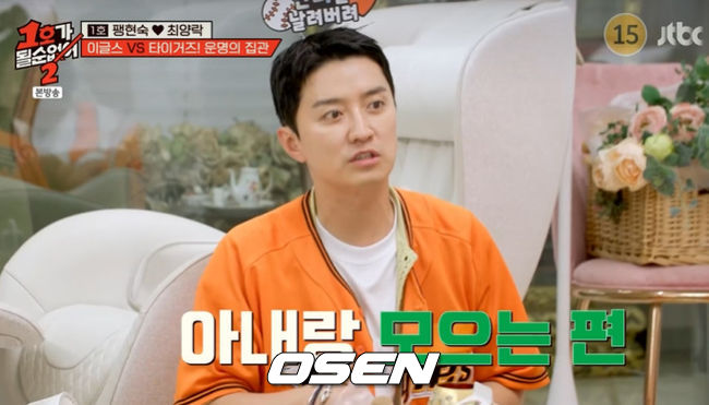 (엑스포츠뉴스장인영기자)기아타이거즈투수출신윤석민이용돈50만원인최양락을부러워했다.23일방송된JTBC예능프로그램'1호가될순없어2'에서는최양락이'한화이글스'의리그1위를자축하며'한화이글스52번영구결번'김태균와'연예계대표한화팬'배우인교진을집으로초대했다.최양락은이른바'남양주이글스파크'에한상가득삼겹살과맥주,치킨까지완비해두고기아타이거즈와의경기를'집관'했다.최양락은"우리끼리보면재미없지않나"라며기아타이거즈팬박준형과레전드투수윤석민의방문을예고했다.3회말이지만한화이글스가9:3으로기아타이거즈를6점차로앞서고있는상황.최양락과김태균,인교진은"나는행복합니다"를외치며환호했다.앞서진팀이설거지를하기로약속한바.김태균은"확실히오늘경기보니까1위와4위의경기력이보인다"며도발했고,최양락또한"더럽게못한다"는너스레로웃음을안겼다.김태균은"잘쳐서출출한데뭐좀더시키자"고제안했고,최양락은의기양양하게"다시켜라"라고했다.이를듣던박준형은"용돈남았냐"고걱정했고,최양락은"걱정말라.카드도있다"고전했다.그러자최양락을제외한네사람은"용돈받아쓰냐"며어리둥절한표정을지었다.최양락은이에"오늘내용돈문제로모인게아니지않냐.이글스가전반기1위한역사적인날에용돈타령이냐"고발끈했다.인교진은돈관리에대해"아내랑모으는데제가쓸돈을조금남기고아내한테다준다"고했고,윤석민은"혼자하고있다"며"신혼때2년정도아내한테맡겼는데못하겠다고하더라"라고해모두의부러움을샀다.박준형이"석민이는사고싶은것도그냥사겠네"라고하자윤석민은"허락맡을필요가없다"고자신감을드러냈다.하지만윤석민은"살다보니까형님들보면부럽다.같이벌면부담이줄지않나"라고외벌이의고충을토로했고,최양락은"아내가더벌면개무시한다.큰소리못치고기죽는다.눈치봐야한다"고고백했다.사진=JTBC방송화면장인영기자[email protected]©엑스포츠뉴스.무단전재및재배포금지.