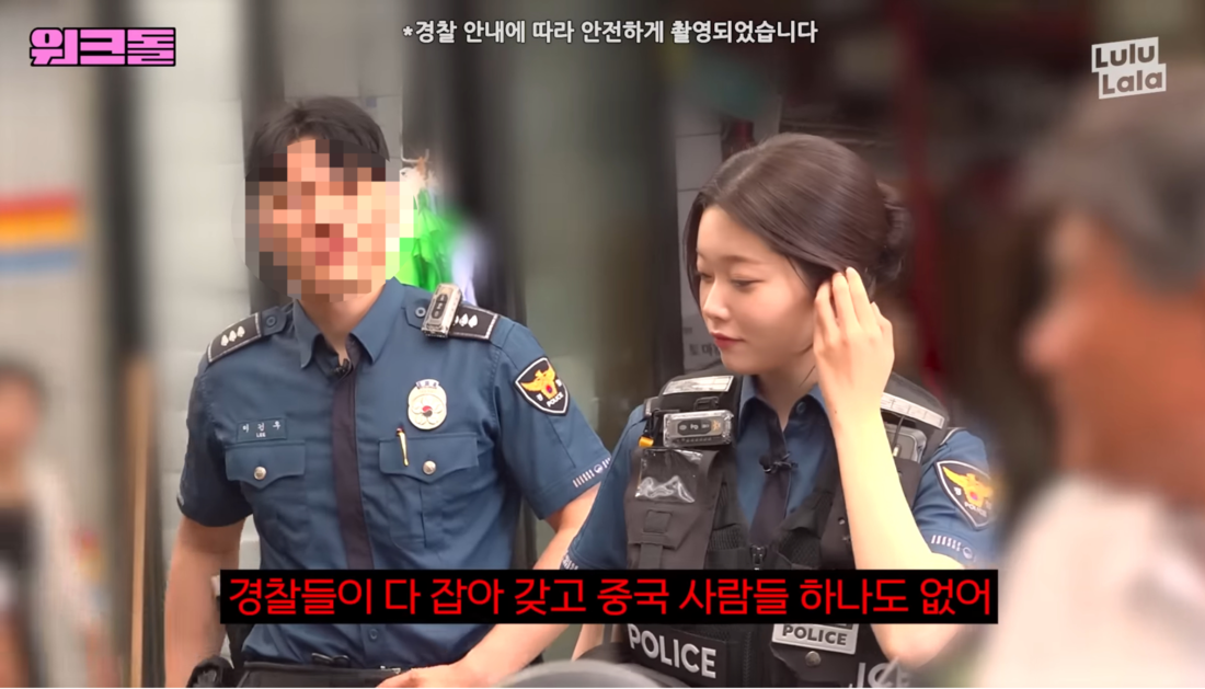 유튜브‘워크맨-Workman’캡처.일일경찰체험에나선그룹빌리(Billlie)의츠키가한시장상인의돌발발언에당황했다.10일유튜브웹예능‘워크맨-Workman’에는‘신입경찰인데가리봉동가요!?ㅣ경찰관ㅣ워크돌ㅣ빌리츠키’라는제목의영상이게재됐다.‘워크돌’은한국의직업을리뷰하는아이돌의아르바이트체험기로,417만명의구독자를보유하고있는‘워크맨’채널에서선보이는콘텐트다.유튜브‘워크맨-Workman’캡처.유튜브‘워크맨-Workman’캡처.해당영상에서워크돌시즌4MC인츠키는서울구로구가리봉동에방문,일일경찰체험을해보는시간을가졌다.경찰제복을입은츠키는경찰장비교육부터순찰차를탑승하고현장에출동하는등실제경찰들이하는업무를몸으로체험했다.영화‘범죄도시’의촬영지이자중국조선족집결지역으로다양한범죄사건이많이발생했던가리봉동첫방문에츠키는“가리봉동에대해검색을해보고처음에는조금무서웠다”고전했다.유튜브‘워크맨-Workman’캡처.그러나츠키는이후경찰업무를실제로해보며“생각한것보다너무안전하고괜찮다”며지역에대한선입견이사라졌다고말했다.동행하는경찰관역시“2023년도에악명높은조직들을검거하고순찰도자주하다보니조직단체같은것은없다.다만중국동포들이술을마시고칼을드는사건이발생하는경우가간혹있다”고설명했다.이어츠키는시장순찰을시작했다.시장상인들에게반갑게인사를하며다양한질문을하는츠키를대다수의상인들은상냥하게맞이해줬다.유튜브‘워크맨-Workman’캡처.유튜브‘워크맨-Workman’캡처.다만그중한상인무리는“지금뭐하고계시는거냐”고친절한질문에도“우리를아냐”며츠키를비롯한경찰들을향해적대심을표했다.이어“하루종일있어도시장에100명도안다닌다.경찰들이다잡아서중국사람들이하나도없다”며“나라망했다”고소리를질러츠키를당황하게만들었다.황급히자리를피한후경찰관은“최근에중국불법체류자를많이체포하다보니시장주이용층인중국인들이시장에사라져서(저분들이)경찰을좋아하지않는것”이라고이유를설명했다.유튜브‘워크맨-Workman’캡처.해당장면은누리꾼들사이에서많은화제를불러일으켰다.특히사회질서와공공의안녕을위해일하는경찰에게적대적으로소리를지르는시장상인에대한비판이이어졌다.한누리꾼은‘지역의안전을위해불법체류자를체포한것이문제냐’며‘방송카메라가있는데도저런태도를보이는것은지역상권에대한인식을더욱망치는것’이라며상인의태도를지적했다.실제로해당상인무리가아닌다른상인은“예전에는시장근처에서싸움이잦았는데최근에는거의없다”며경찰들의노고에대한감사를표현하기도했다.한편,해당편은경찰이라는직업에대한이해를도우며경찰업무의현실을함께조명했다는긍정적인반응을얻고있다.누리꾼들은‘생생한현장체험을통해경찰의고충이전해졌다’며응원의목소리를보내고있다.강신우기자[email protected]©스포츠경향.무단전재및재배포금지.