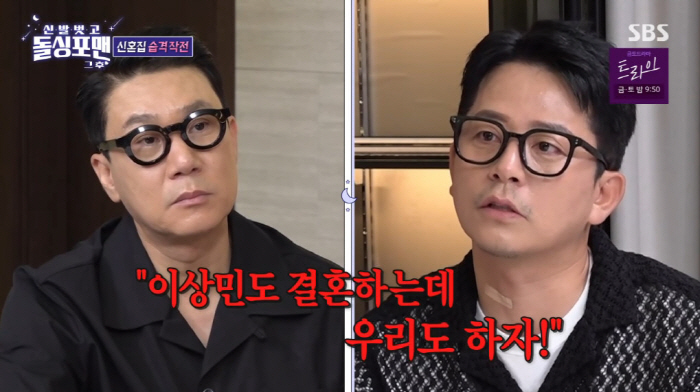 [스포츠조선닷컴정안지기자]'새신랑'이상민의신혼집이공개됐다.29일방송된SBS'신발벗고돌싱포맨'에는새신랑이상민의신혼집이공개됐다.이날이상민의집에들어선탁재훈은"전집이랑비슷하다"며매의눈으로신혼집을스캔해웃음을안겼다.본격신혼집수색에돌입,신혼티내는꽃분홍소파와신혼낭만살려줄시티뷰,깨가쏟아질신혼집식탁,빅사이즈의부부침대가눈길을끌었다.그때김준호는"집에서세끼먹는남편을위해아내에게피해주지말라고"라면서삼식이3종세트인고무장갑과김,즉섭밥을선물로건넸다.그러자이상민은"지난번에내가너준거아니냐"고해웃음을안겼다.이어김준호는"상민이형성공했다"면서"형이결혼하고'이상민도결혼하는데우리도하자'면서유행처럼번지고있다"고했다.이상민은"윤정수형도결혼한다"고했다.그러자임원희는"다결혼한다"고했고,탁재훈도"못난이들다간다"며씁쓸함을드러내웃음을안겼다[email protected]©스포츠조선.무단전재및재배포금지.
