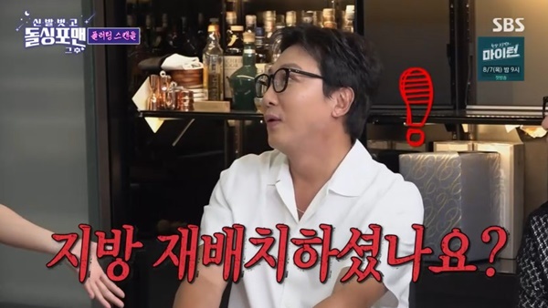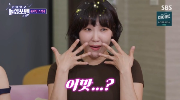 신발벗고돌싱포맨/사진=SBS캡처[스포츠투데이정예원기자]'신발벗고돌싱포맨'탁재훈이이은지를향해추파를던졌다.29일방송된SBS예능'신발벗고돌싱포맨'(이하'돌싱포맨')에서는그룹러블리즈이미주,방송인박소현,코미디언이은지가'돌싱포맨'과조우하는모습이그려졌다.신발벗고돌싱포맨/사진=SBS캡처이날탁재훈은이은지에게"요즘다이어트하냐.살이많이빠져예뻐졌다"고물었다.그러자이은지는"라디오를하는데생각보다체력소모가되게크더라.운동을할수밖에없었다"고답했다.탁재훈이"정말그이유냐.남자친구생긴것아니냐"고추궁하자,이은지는"있다면어떡하실거고없다면어떡하실거냐"며도발했다.당황한탁재훈은뜬금없이"있건없건난좀찌는게좋다"고말해웃음을유발했다.그런가하면이은지는"근데선배님지방재배치하셨냐.너무화사해지셨다"고그를치켜세웠고,탁재훈은"확결혼할까.칭찬해주는사람이랑"이라고말해묘한분위기를자아냈다.그러나김준호가"은지랑나이차이가너무나서안된다"고나섰다.또한이은지는"선배님이노래부를때가정말멋있었다.매력이터지시더라"며탁재훈의무대위모습을떠올리기도했다.이말을들은탁재훈은"마이크가져오라"고화답했다.[스포츠투데이정예원기자[email protected]]Copyright©스포츠투데이.무단전재및재배포금지.